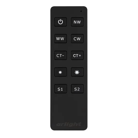 Артикул: 023050; Бренд: Arlight; товарная группа: пульт; Степень защиты: IP20; Напряжение питания, V: 3; Цвет: черный; Наличие пульта: RF (Радио); Длина, мм: 135; Ширина, мм: 40; высота: 11