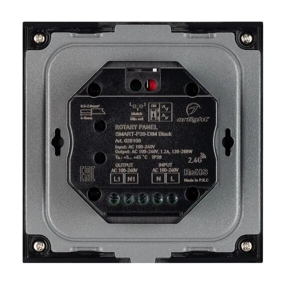 Arlight 028109 Панель SMART-P37-DIM-IN Black (230V, 1.2A, TRIAC, Rotary, 2.4G) (Arlight, IP20 Пластик, 5 лет) - ! УПАКОВКА СОСТОИТ ИЗ - 1 шт