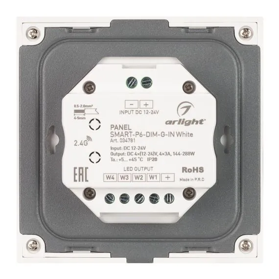 Arlight 034781 Панель SMART-P6-DIM-G-IN White (12-24V, 4x3A, Sens, 2.4G) (Arlight, IP20 Пластик, 5 лет) - ! УПАКОВКА СОСТОИТ ИЗ - 1 шт