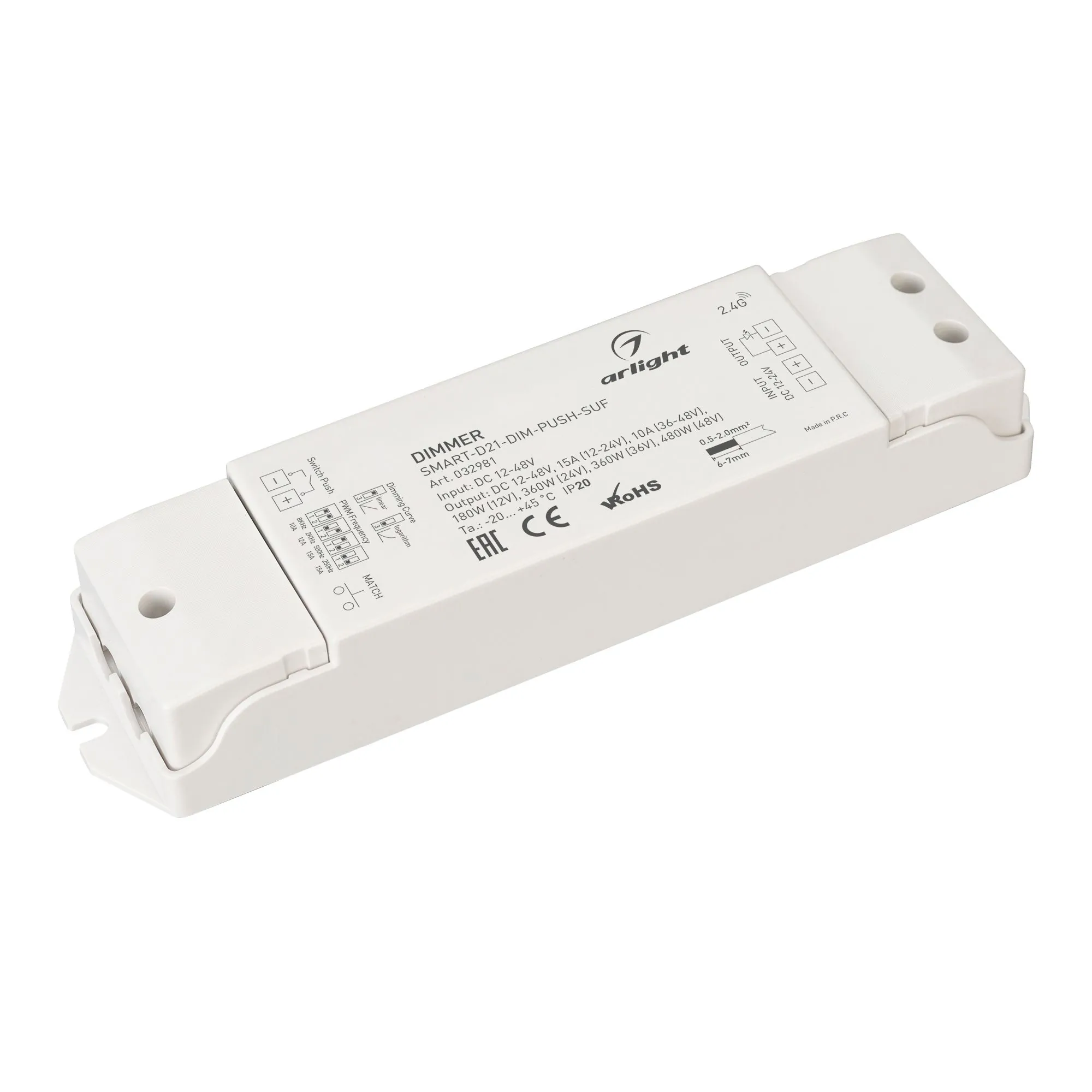 Arlight 032981 Диммер SMART-D21-DIM-PUSH-SUF (12-48, 1x15A, 2,4G) (Arlight, IP20 Пластик, 5 лет) 032981