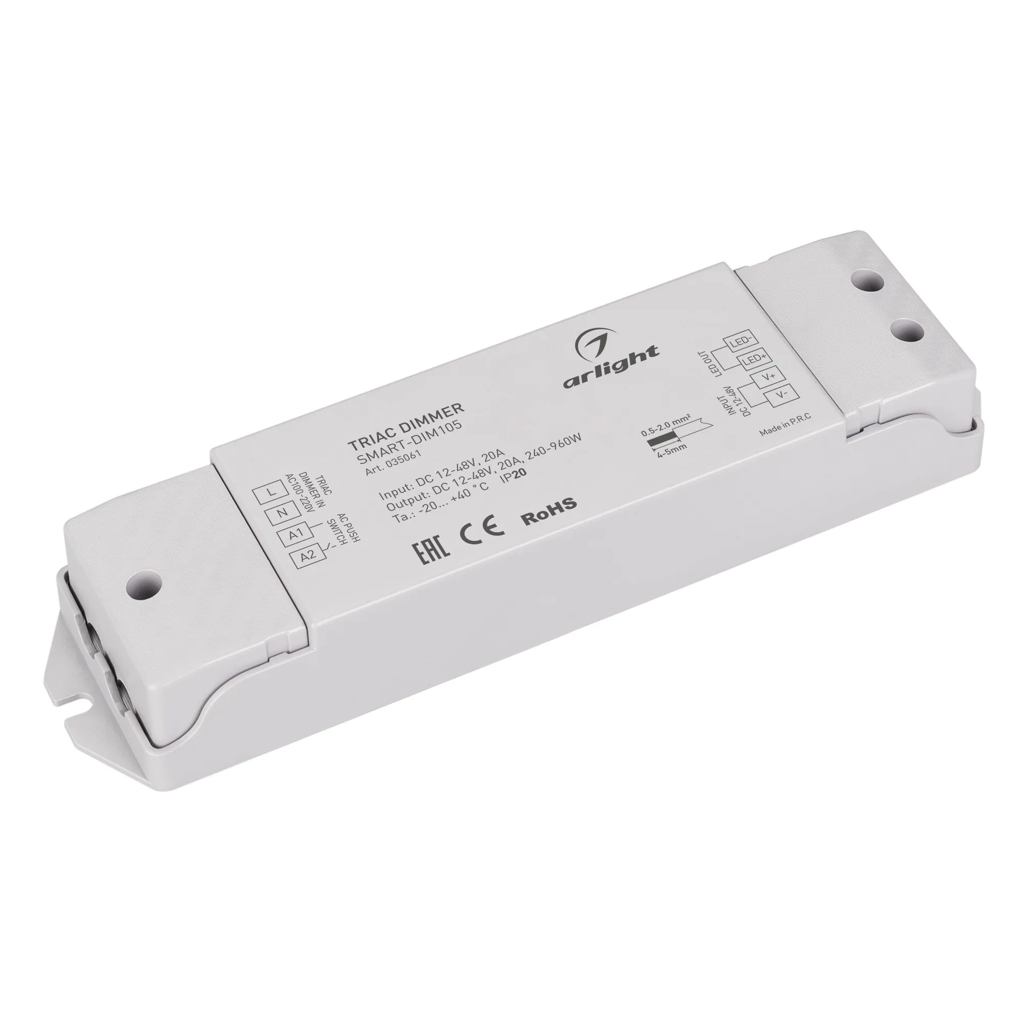 Arlight 035061 Диммер SMART-DIM105 (12-48V, 20A, TRIAC) (Arlight, IP20 Пластик, 5 лет) 035061