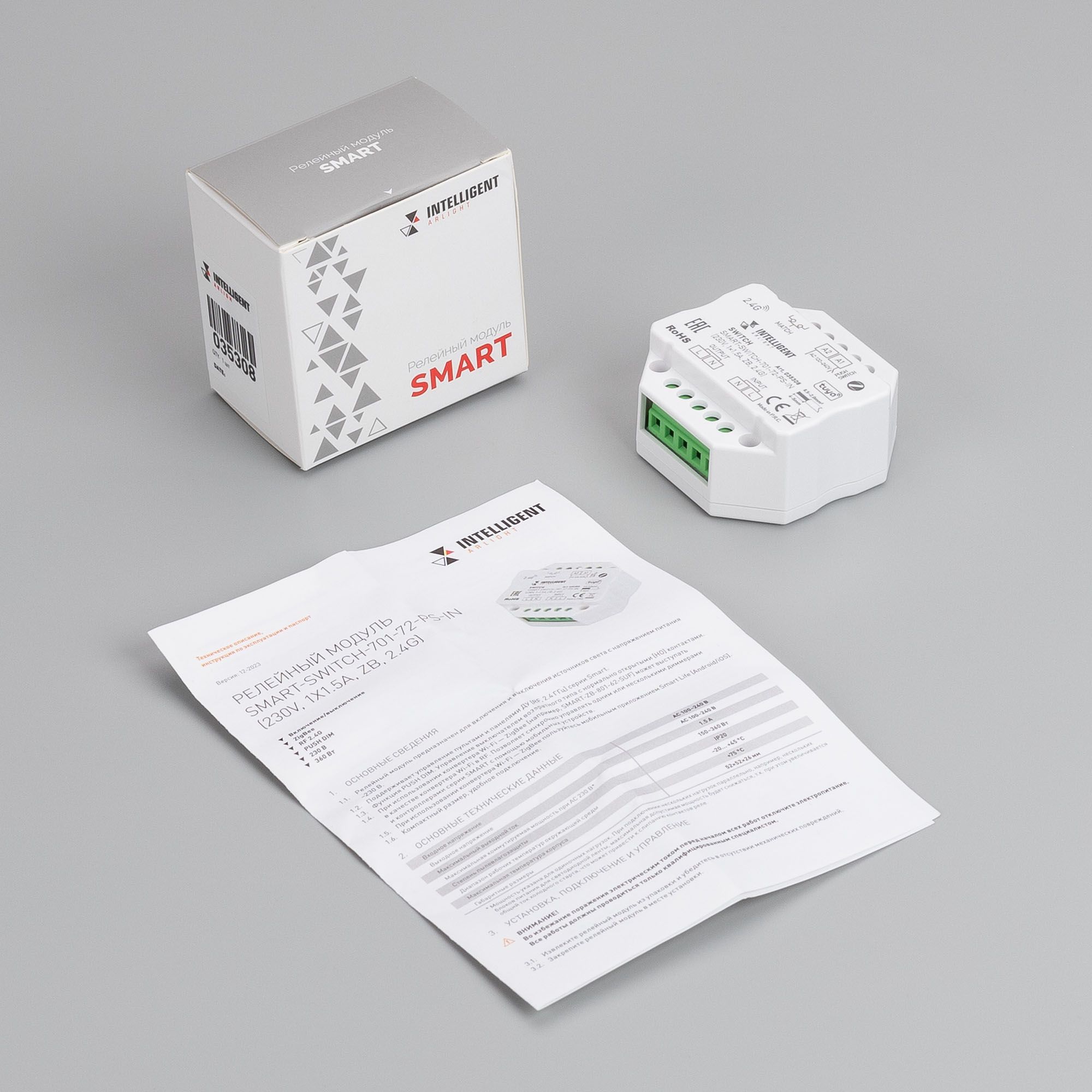Arlight 035308 INTELLIGENT ARLIGHT Релейный модуль SMART-SWITCH-701-72-PS-IN (230V, 1x1,5A, ZB, 2,4G) (IARL, Пластик) 035308