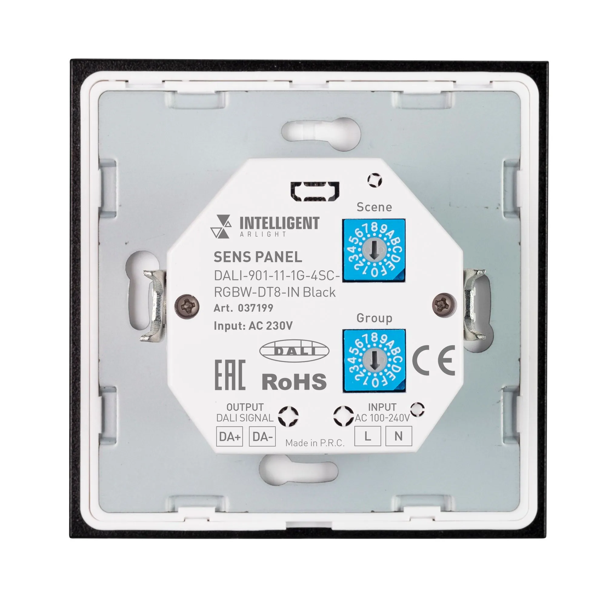 Arlight 037199 INTELLIGENT ARLIGHT Сенсорная панель DALI-901-11-1G-4SC-RGBW-DT8-IN Black (BUS/230V) (IARL, IP20 Пластик, 3 года) - ! УПАКОВКА СОСТОИТ ИЗ - 1 шт