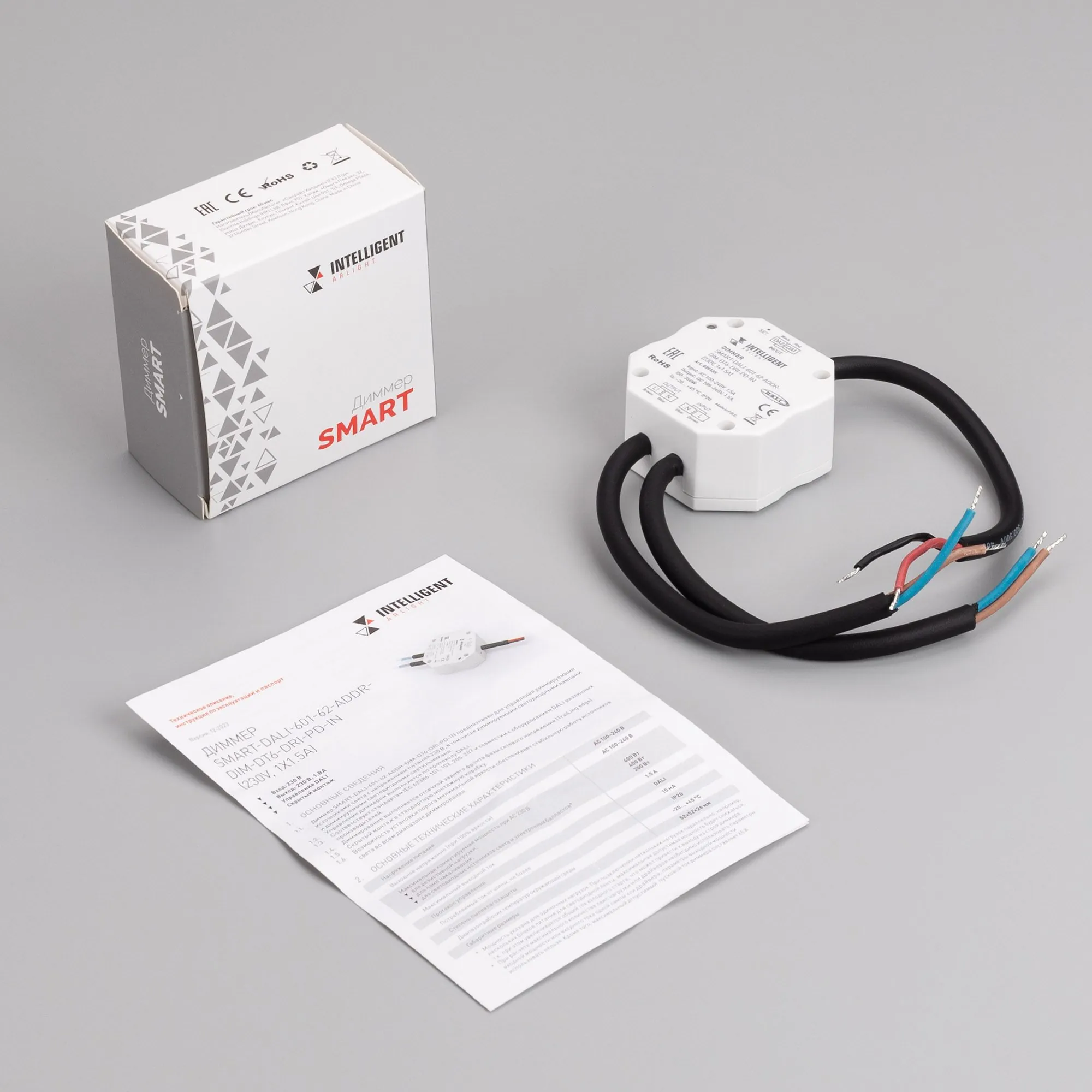 Arlight 039135 INTELLIGENT ARLIGHT Диммер SMART-DALI-601-62-ADDR-DIM-DT6-DRI-PD-IN (230V, 1x1.5A) (IARL, IP20 Пластик, 5 лет) - ! УПАКОВКА СОСТОИТ ИЗ - 1 шт