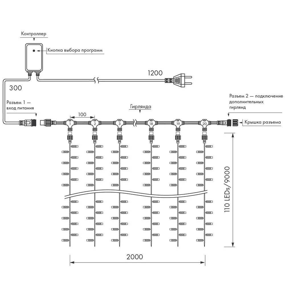 Артикул: 024874; Бренд: Arlight; товарная группа: гирлянда; Степень защиты: IP65; Напряжение питания, V: 230; Температурный режим: -30 °C - 40 °C; Общая мощность, W: 120; Цветовая температура, K: 6000; Длина, мм: 2000; Ширина, мм: 10; высота: 9000