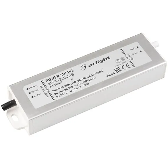 Arlight 020417 Блок питания ARPV-24040-B (24V, 1.7A, 40W) (Arlight, IP67 Металл, 3 года) - ! УПАКОВКА СОСТОИТ ИЗ - 1 шт