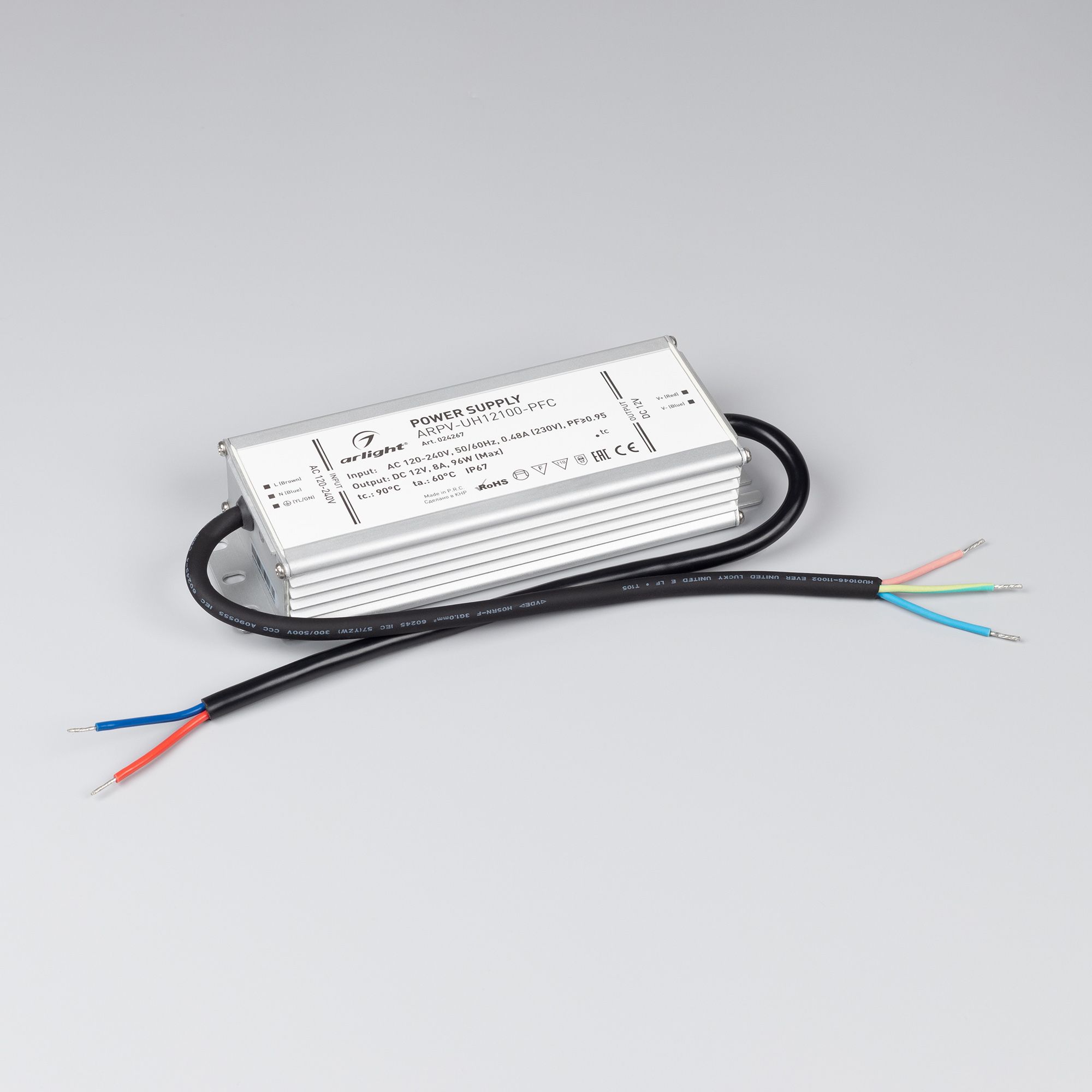 Arlight 024267 Блок питания ARPV-UH12100-PFC (12V, 8.0A, 96W) (Arlight, IP67 Металл, 7 лет) - ! УПАКОВКА СОСТОИТ ИЗ - 1 шт