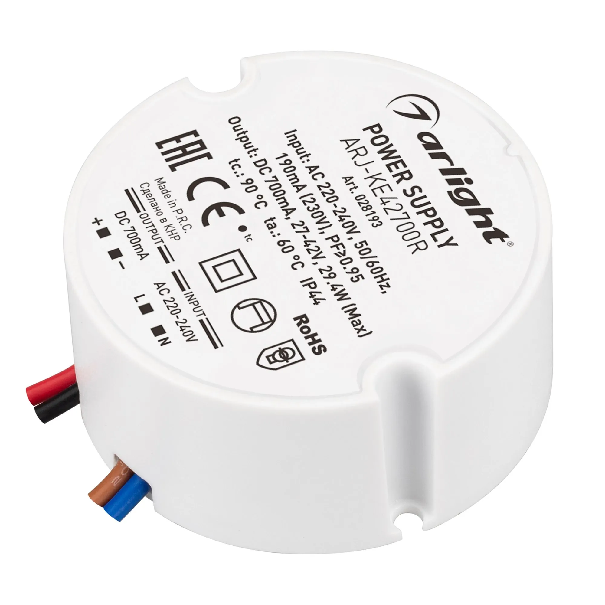 Arlight 028193 Блок питания ARJ-KE42700R (29W, 700mA, PFC) (Arlight, IP44 Пластик, 5 лет) - ! УПАКОВКА СОСТОИТ ИЗ - 1 шт