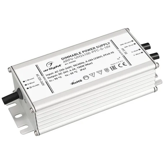 Arlight 030284 Блок питания ARPV-UH24100-PFC-0-10V (24V, 4.2A, 100W) (Arlight, IP67 Металл, 7 лет) - ! УПАКОВКА СОСТОИТ ИЗ - 1 шт