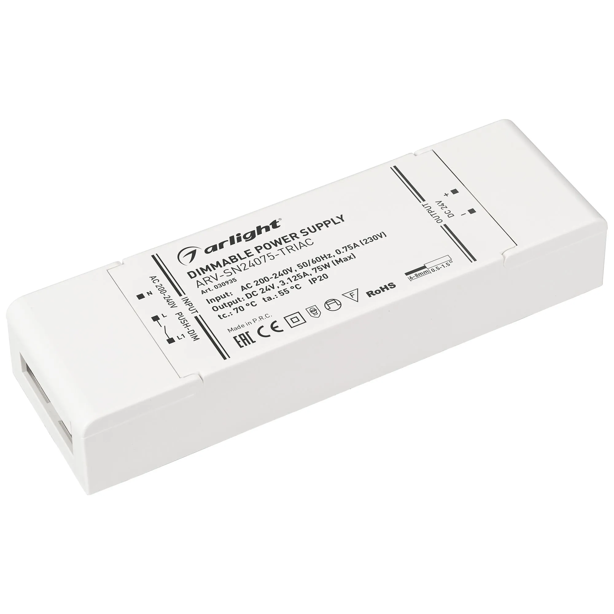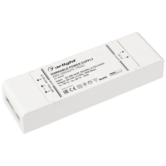 Arlight 030935 Блок питания ARV-SN24075-TRIAC (24V, 3.125A, 75W) (Arlight, IP20 Пластик, 3 года) - ! УПАКОВКА СОСТОИТ ИЗ - 1 шт