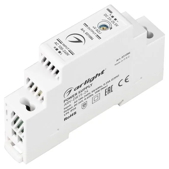 Arlight 031084 Блок питания ARV-DR15-24 (24V, 0.63A, 15W) (Arlight, IP20 DIN-рейка) - ! УПАКОВКА СОСТОИТ ИЗ - 1 шт