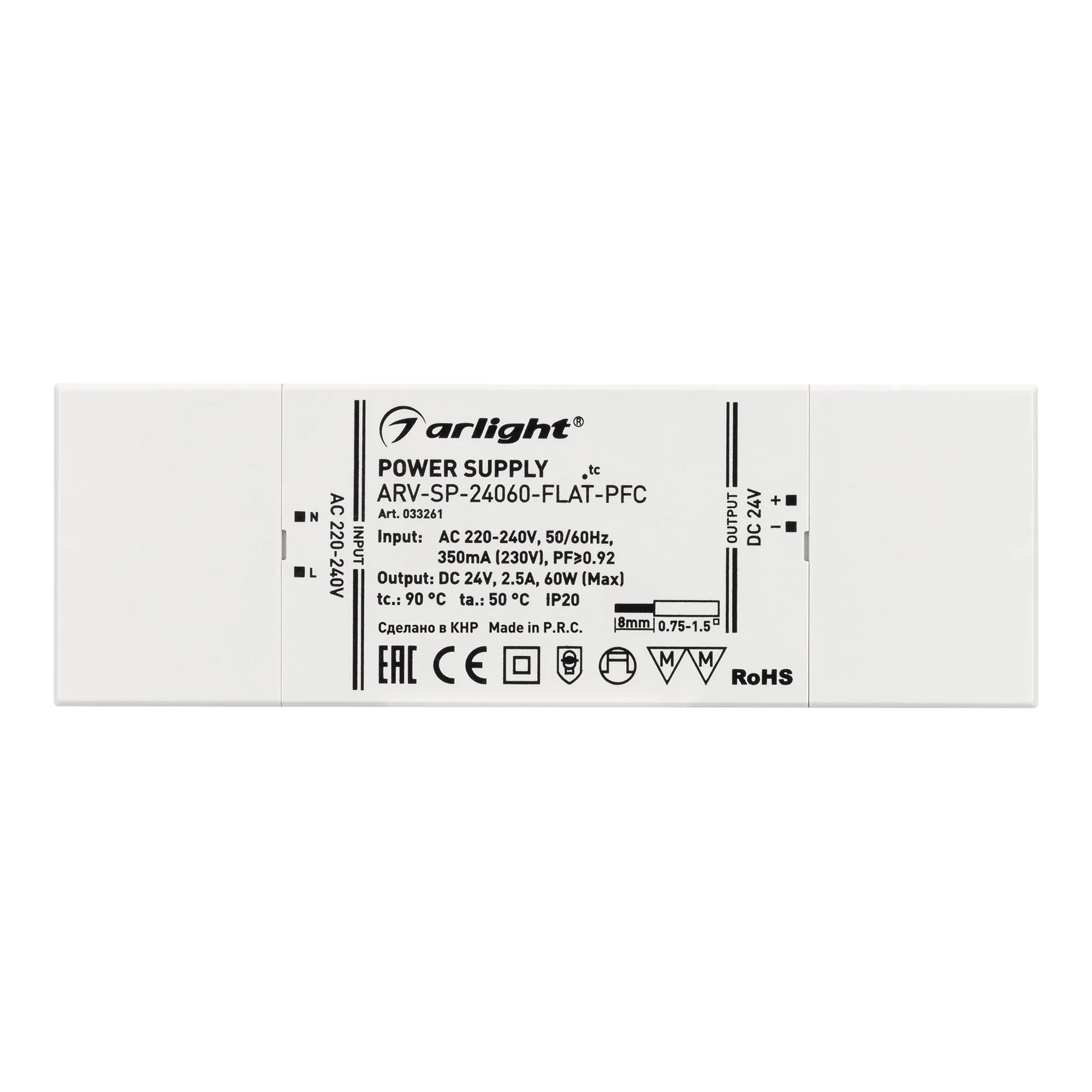 Arlight 033261 Блок питания ARV-SP-24060-FLAT-PFC (24V, 2.5A, 60W) (Arlight, IP20 Пластик, 5 лет) - ! УПАКОВКА СОСТОИТ ИЗ - 1 шт
