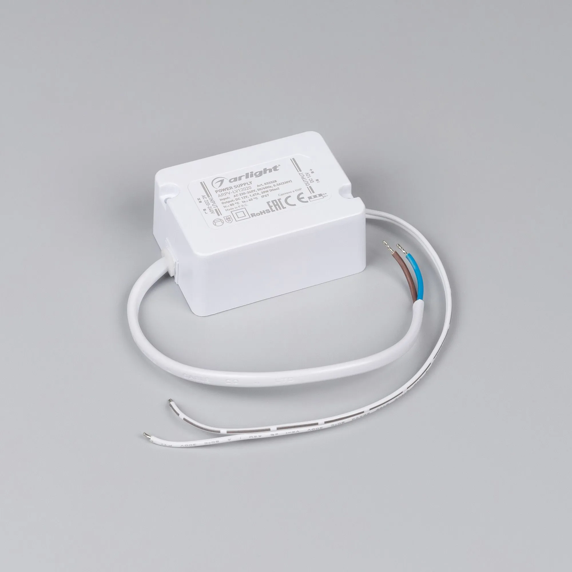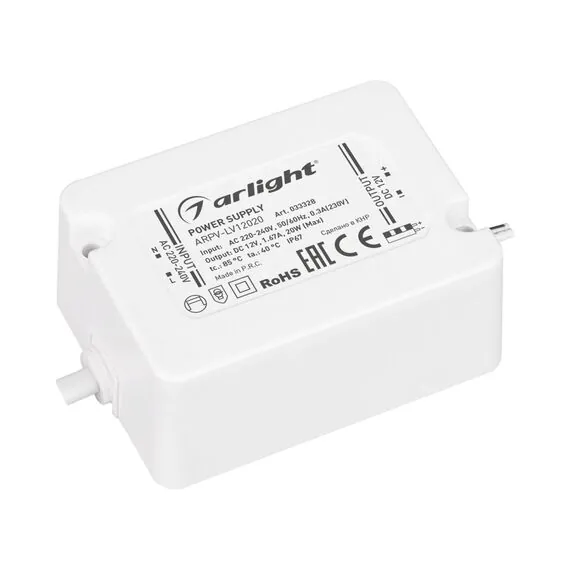 Arlight 033328 Блок питания ARPV-LV12020 (12V, 1.67A, 20W) (Arlight, IP67 Пластик, 3 года) - ! УПАКОВКА СОСТОИТ ИЗ - 1 шт