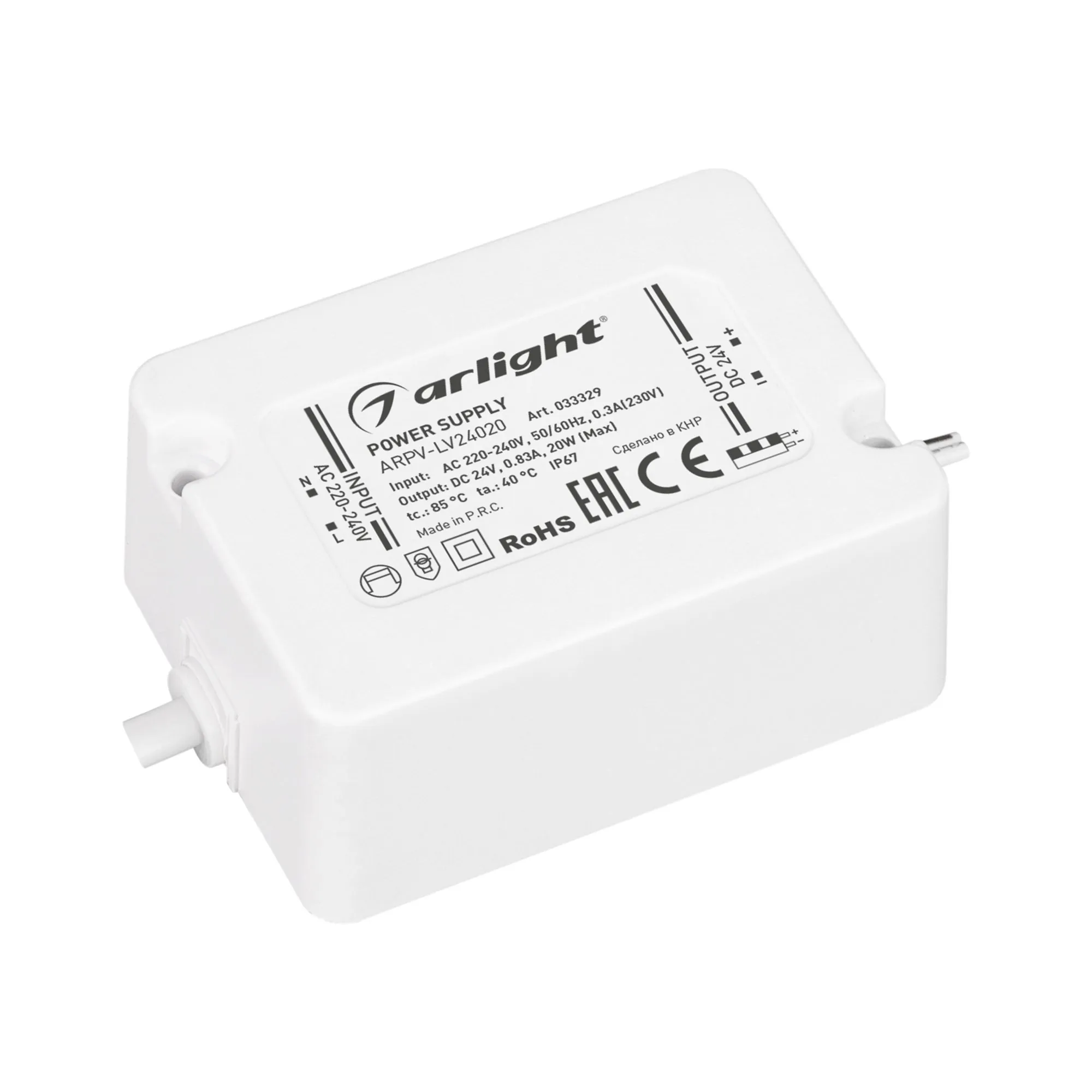 Arlight 033329 Блок питания ARPV-LV24020 (24V, 0.83A, 20W) (Arlight, IP67 Пластик, 3 года) - ! УПАКОВКА СОСТОИТ ИЗ - 1 шт