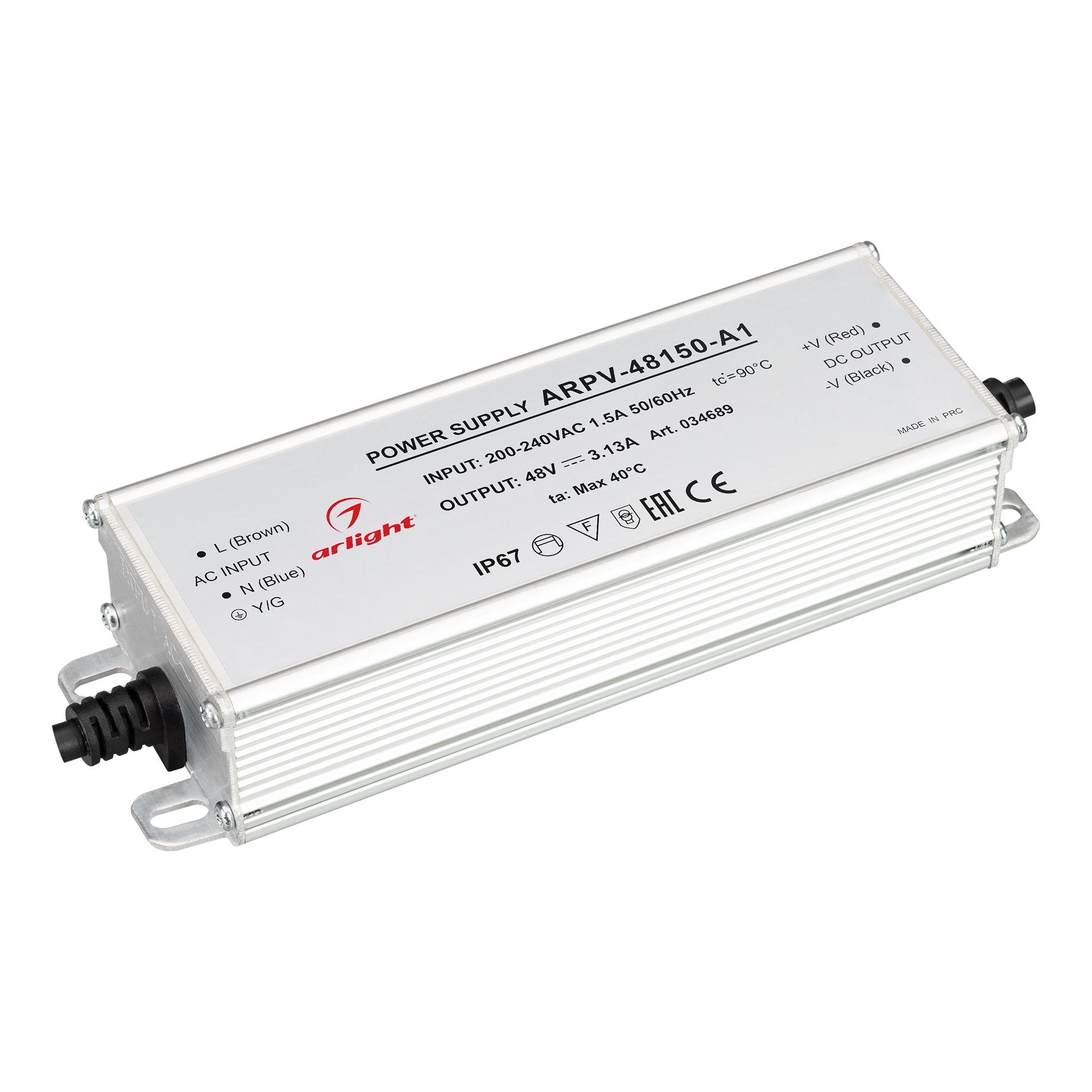 Arlight 034689 Блок питания ARPV-48150-A1 (48V, 3.13А, 150W) (Arlight, IP67 Металл, 3 года) - ! УПАКОВКА СОСТОИТ ИЗ - 1 шт