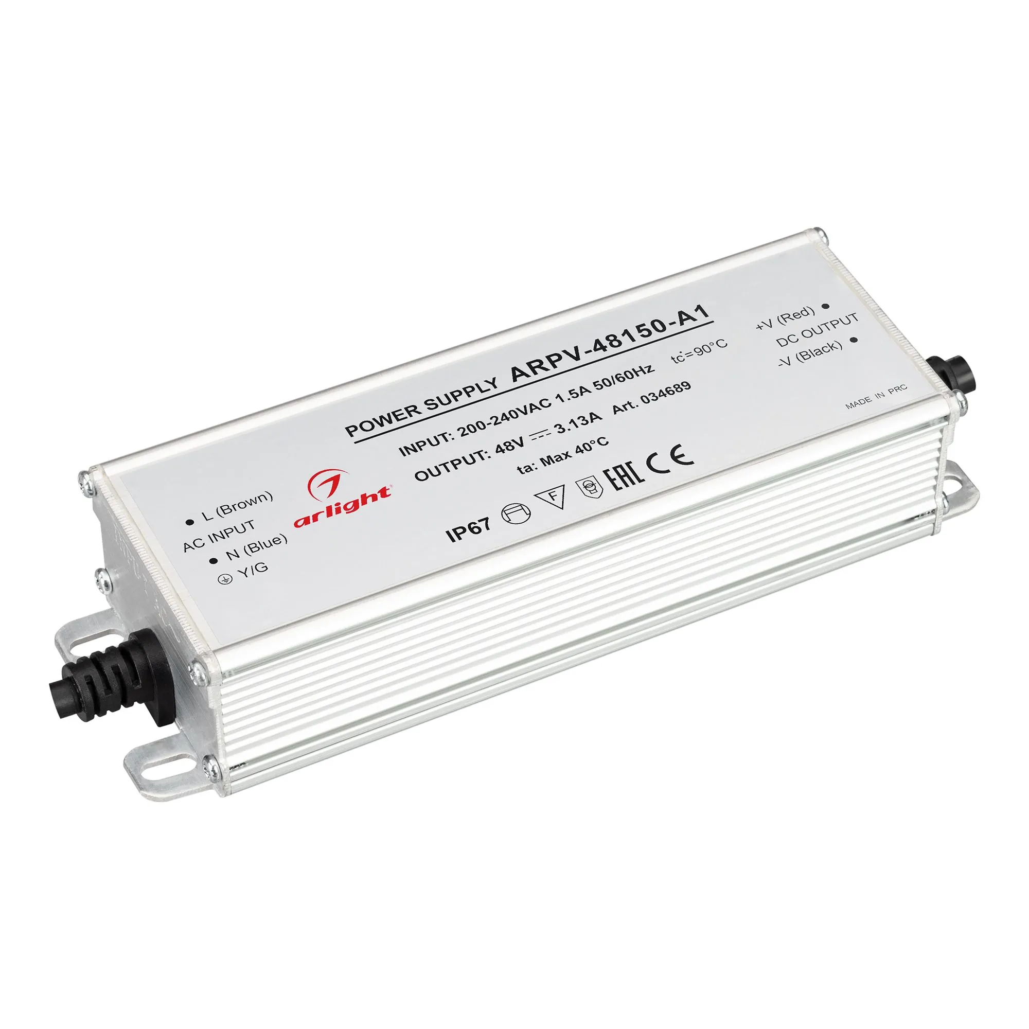 Arlight 034689 Блок питания ARPV-48150-A1 (48V, 3.13А, 150W) (Arlight, IP67 Металл, 3 года) - ! УПАКОВКА СОСТОИТ ИЗ - 1 шт