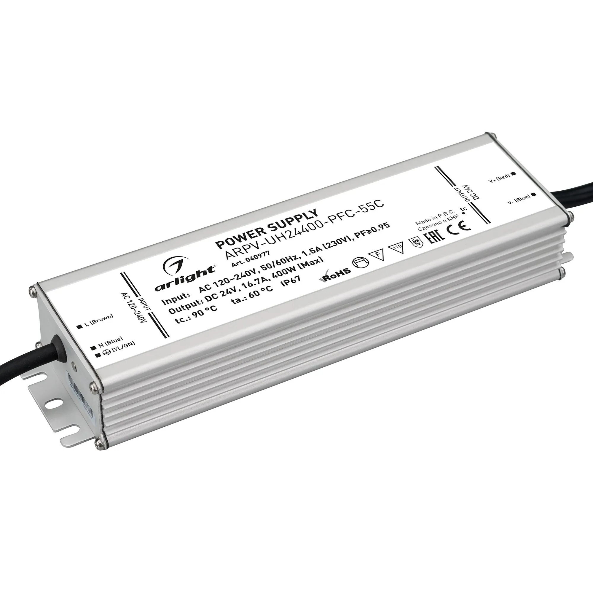 Arlight 040977 Блок питания ARPV-UH24400-PFC-55C (24V, 16.7A, 400W) (Arlight, IP67 Металл, 5 лет) - ! УПАКОВКА СОСТОИТ ИЗ - 1 шт