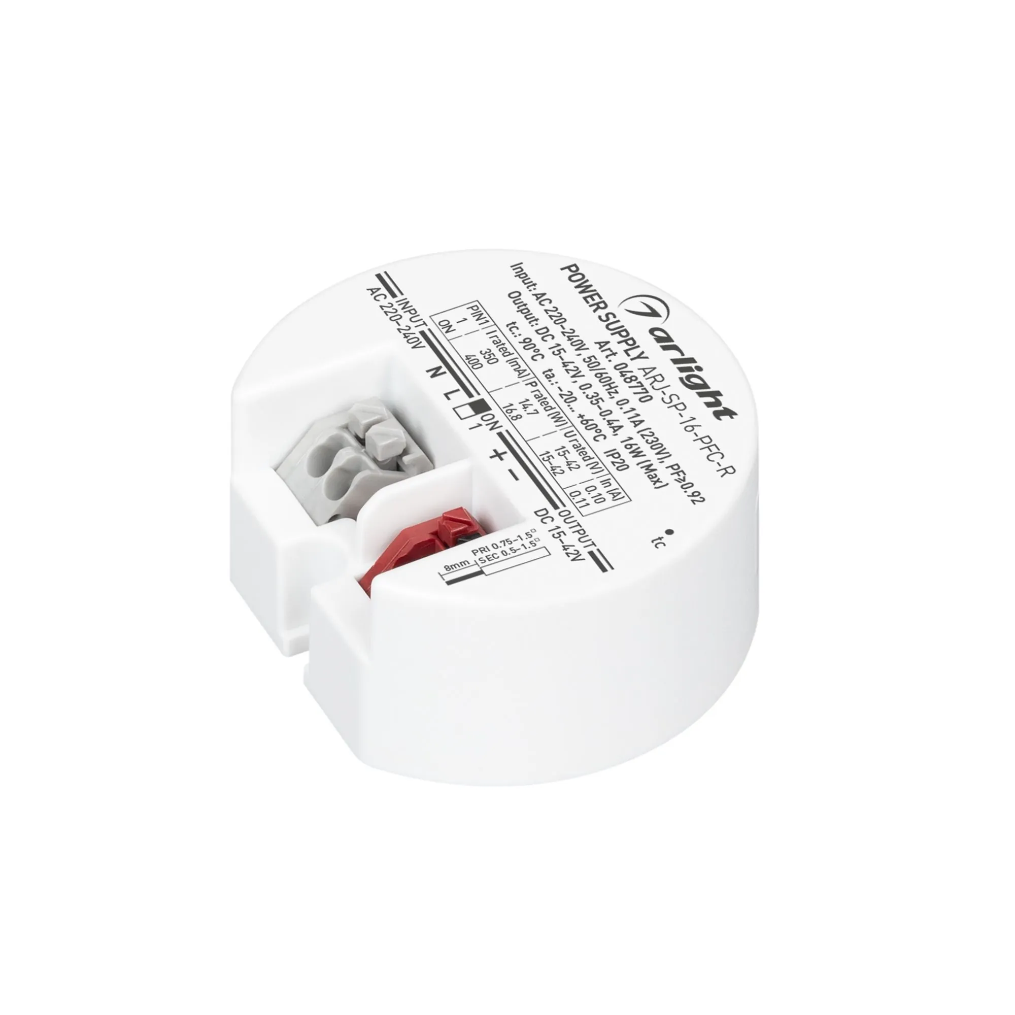 Arlight 048770 Блок Питания ARJ-SP-16-PFC-R (16W, 15-42V, 0.35-0.4A) (Arlight, IP20 Пластик, 5 лет) - ! УПАКОВКА СОСТОИТ ИЗ - 1 шт