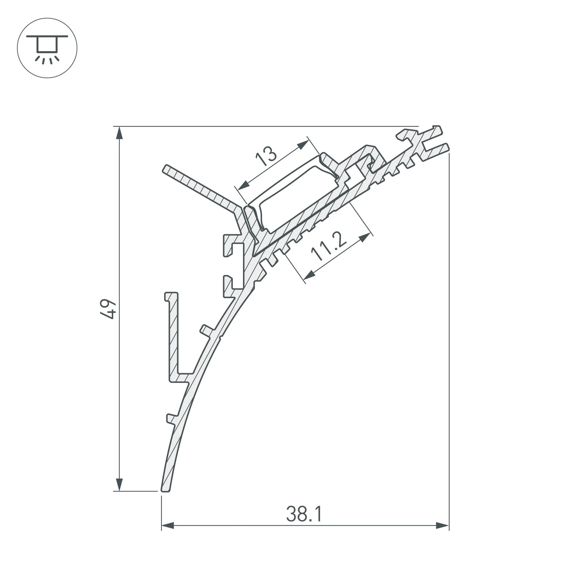 Артикул: 021969; Бренд: Arlight; товарная группа: профиль; Назначение: Для закарнизной подсветки; Тип крепления: накладной; Цвет: Серебристый; Гарантия, мес: 24; Длина, мм: 2000; Ширина, мм: 38.1; высота: 49
