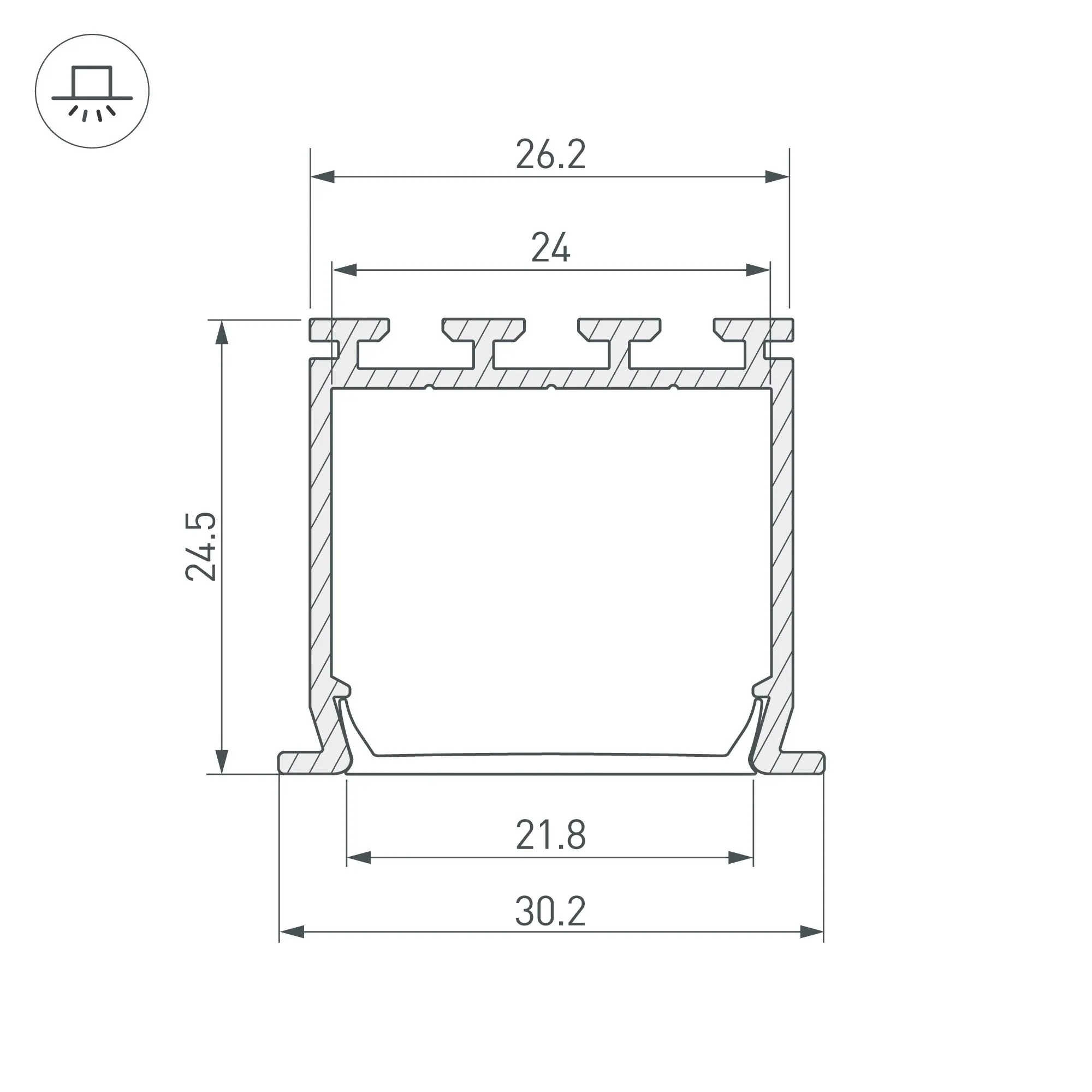 Артикул: 023386; Бренд: Arlight; товарная группа: профиль; Назначение: Для прямоугольных светильников; Тип крепления: Встраиваемый с накладным фланцем; Цвет: Серебристый; Гарантия, мес: 24; Длина, мм: 3000; Ширина, мм: 30.2; высота: 24.5