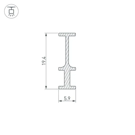 Артикул: 025232; Бренд: Arlight; товарная группа: профиль; Назначение: Профиль-держатель; Тип крепления: Подвесной; Цвет: Серебристый; Гарантия, мес: 24; Длина, мм: 2000; Ширина, мм: 5.9; высота: 19.4