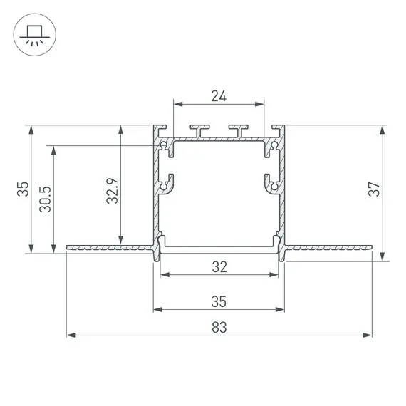 Артикул: 027158; Бренд: Arlight; товарная группа: профиль; Назначение: Для ГКЛ; Тип крепления: Встраиваемый со скрытым фланцем; Цвет: Серебристый; Гарантия, мес: 36; Длина, мм: 2000; Ширина, мм: 83; высота: 35