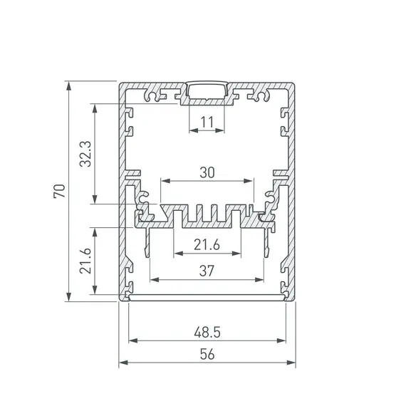 Артикул: 030303; Бренд: Arlight; товарная группа: профиль; Назначение: Для прямоугольных светильников; Тип крепления: Накладной / Подвесной; Цвет: Серебристый; Гарантия, мес: 24; Длина, мм: 2000; Ширина, мм: 56; высота: 70