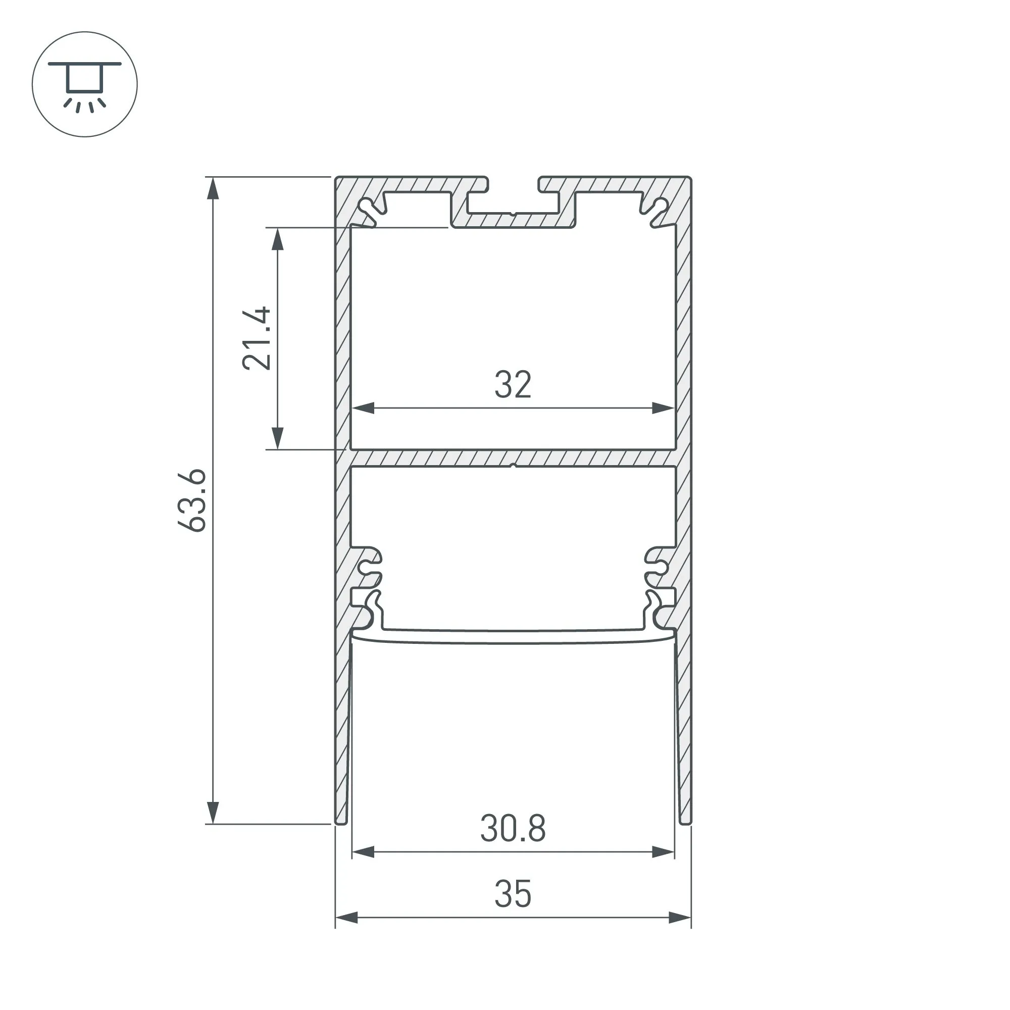Артикул: 033277; Бренд: Arlight; товарная группа: профиль; Назначение: Для прямоугольных светильников; Тип крепления: Накладной / Подвесной; Цвет: Серебристый; Гарантия, мес: 36; Длина, мм: 2000; Ширина, мм: 35; высота: 63.6