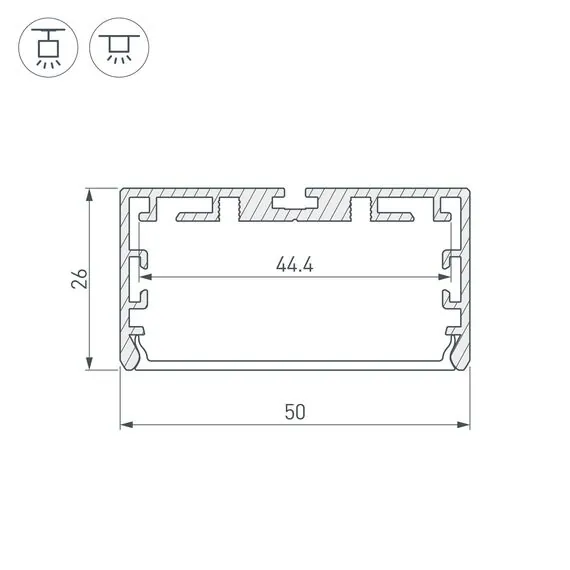 Артикул: 033772; Бренд: Arlight; товарная группа: профиль; Назначение: Для прямоугольных светильников; Тип крепления: Накладной / Подвесной / Встраиваемый; Цвет: Серебристый; Гарантия, мес: 24; Длина, мм: 2000; Ширина, мм: 50; высота: 26