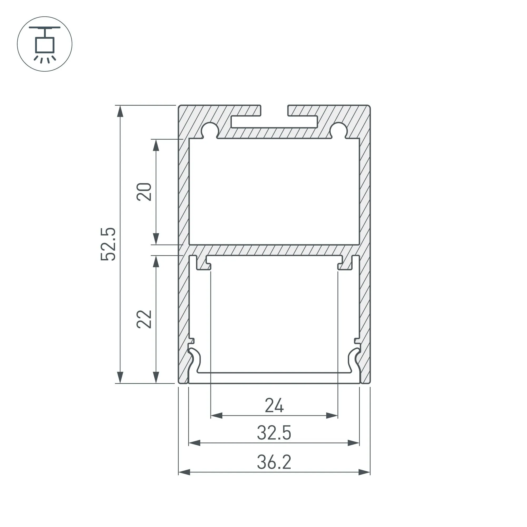 Артикул: 036137; Бренд: Arlight; товарная группа: профиль; Назначение: Для прямоугольных светильников; Тип крепления: Подвесной; Цвет: Серебристый; Гарантия, мес: 24; Длина, мм: 3000; Ширина, мм: 36.2; высота: 52.5