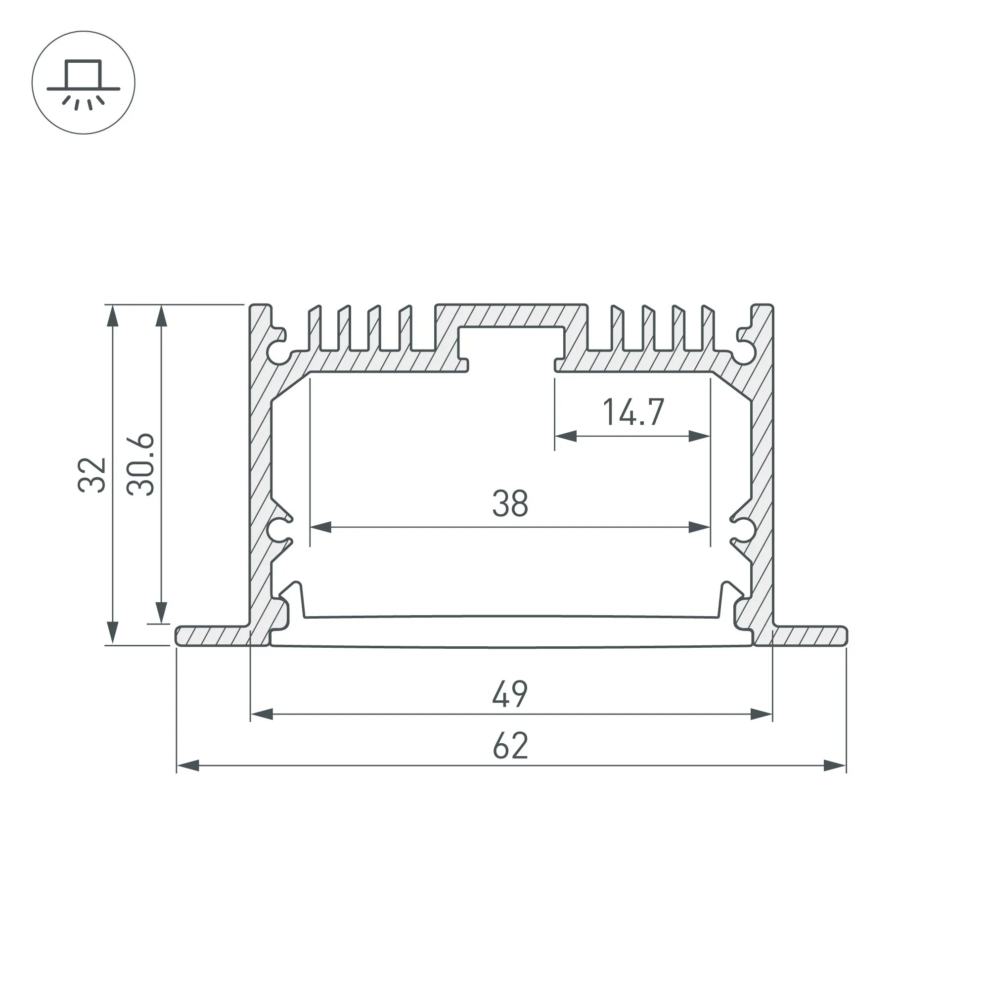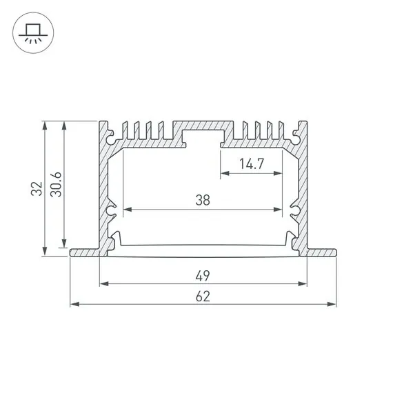 Артикул: 036170; Бренд: Arlight; товарная группа: профиль; Назначение: Для прямоугольных светильников; Тип крепления: Встраиваемый с накладным фланцем; Цвет: Серебристый; Гарантия, мес: 24; Длина, мм: 3000; Ширина, мм: 62; высота: 32