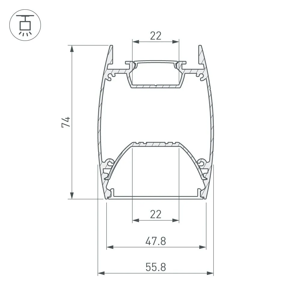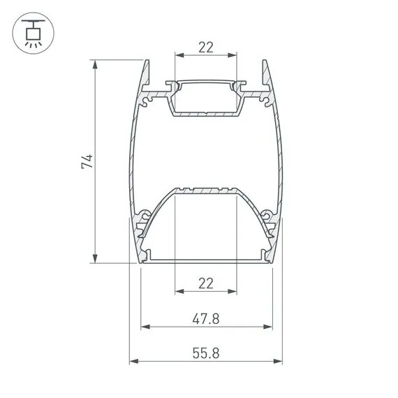 Артикул: 036345; Бренд: Arlight; товарная группа: профиль; Назначение: Для прямоугольных светильников; Тип крепления: Подвесной; Цвет: Серебристый; Гарантия, мес: 24; Длина, мм: 2000; Ширина, мм: 55.8; высота: 74