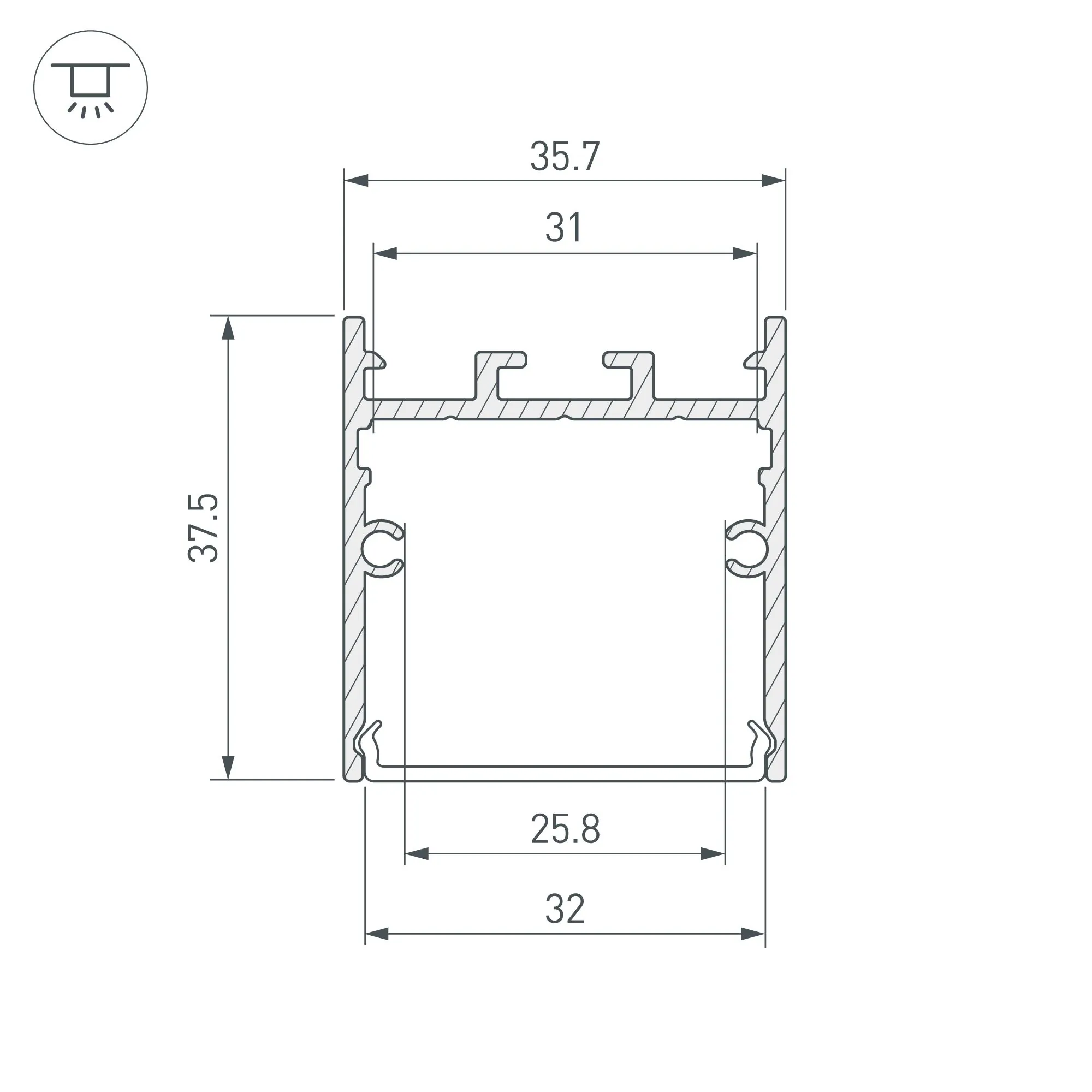 Артикул: 038362; Бренд: Arlight; товарная группа: профиль; Назначение: Для прямоугольных светильников; Тип крепления: Накладной / Подвесной; Цвет: Серебристый; Гарантия, мес: 36; Длина, мм: 2000; Ширина, мм: 35.7; высота: 37.5