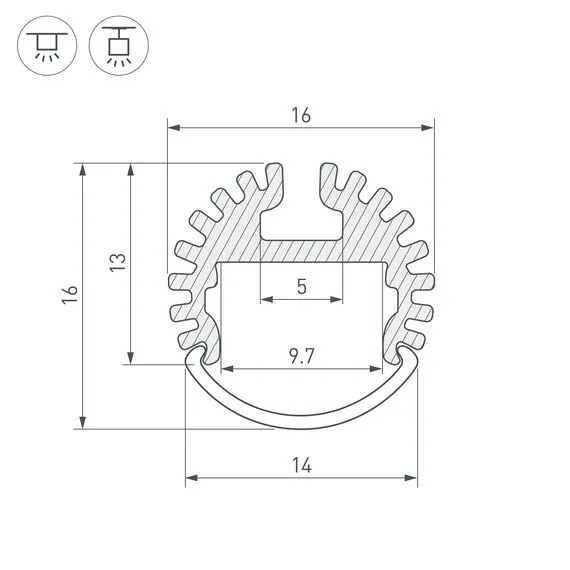 Артикул: 039217; Бренд: Arlight; товарная группа: профиль; Назначение: Для контурной подсветки; Тип крепления: Накладной / Подвесной; Цвет: Серебристый; Гарантия, мес: 36; Длина, мм: 2000; Ширина, мм: 16; высота: 13; Диаметр, мм: 16