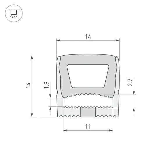Артикул: 040830; Бренд: Arlight; товарная группа: профиль; Назначение: Для контурной подсветки; Тип крепления: накладной; Угол рассеивания, град: 115; Цвет: белый; Гарантия, мес: 36; Длина, мм: 50000; Ширина, мм: 14; высота: 14
