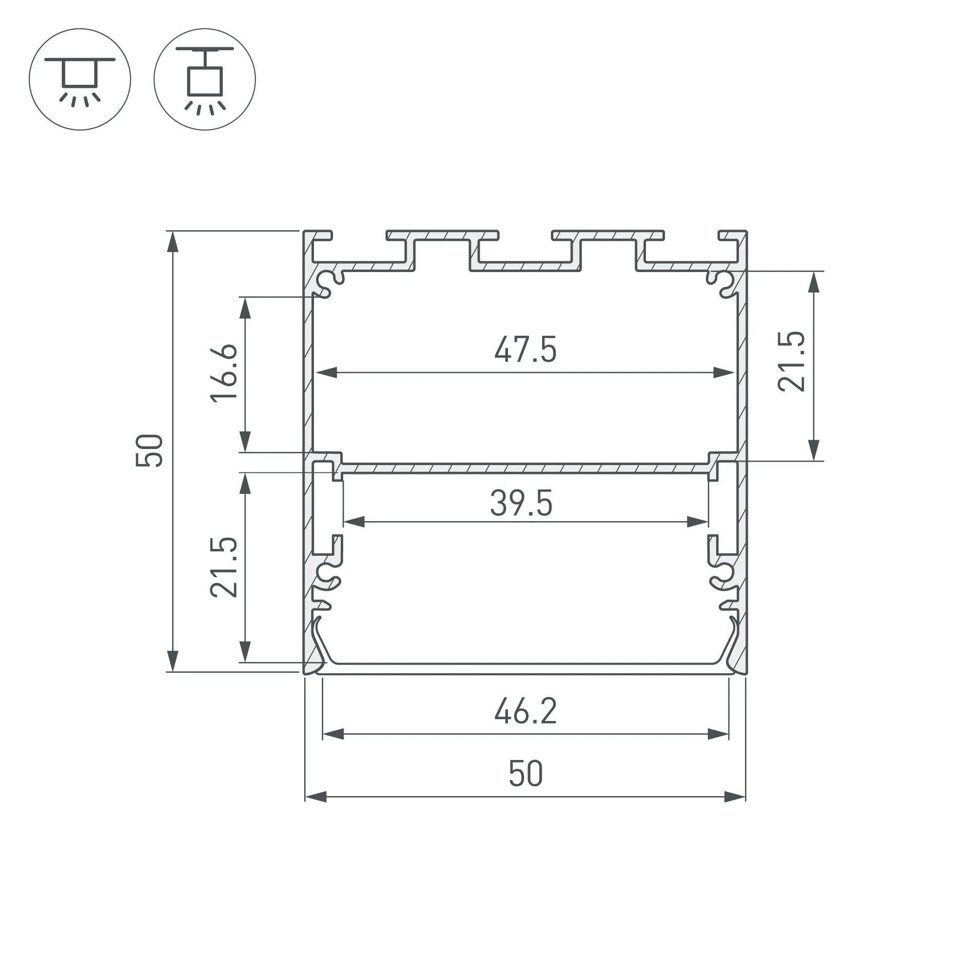 Артикул: 041840; Бренд: Arlight; товарная группа: профиль; Назначение: Для прямоугольных светильников; Тип крепления: Накладной / Подвесной; Цвет: черный; Гарантия, мес: 36; Длина, мм: 2500; Ширина, мм: 50; высота: 50