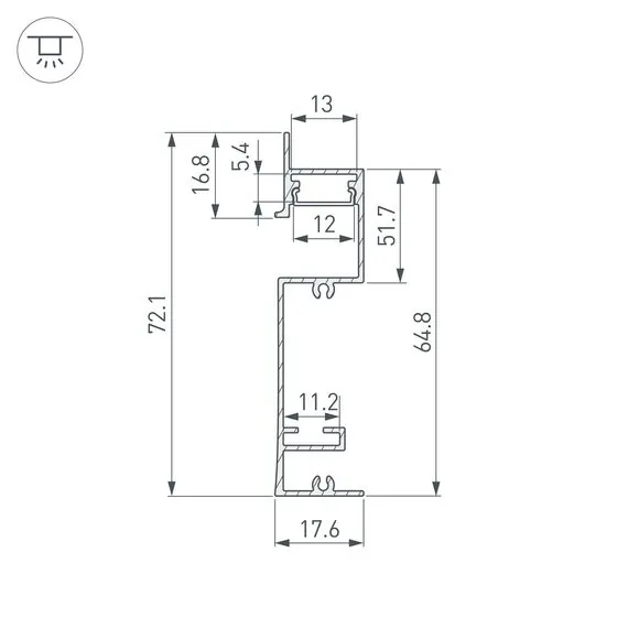 Артикул: 043592; Бренд: Arlight; товарная группа: профиль; Назначение: Для плинтуса; Тип крепления: Встраиваемый с накладным фланцем; Цвет: белый; Гарантия, мес: 36; Длина, мм: 2000; Ширина, мм: 17.6; высота: 72.1