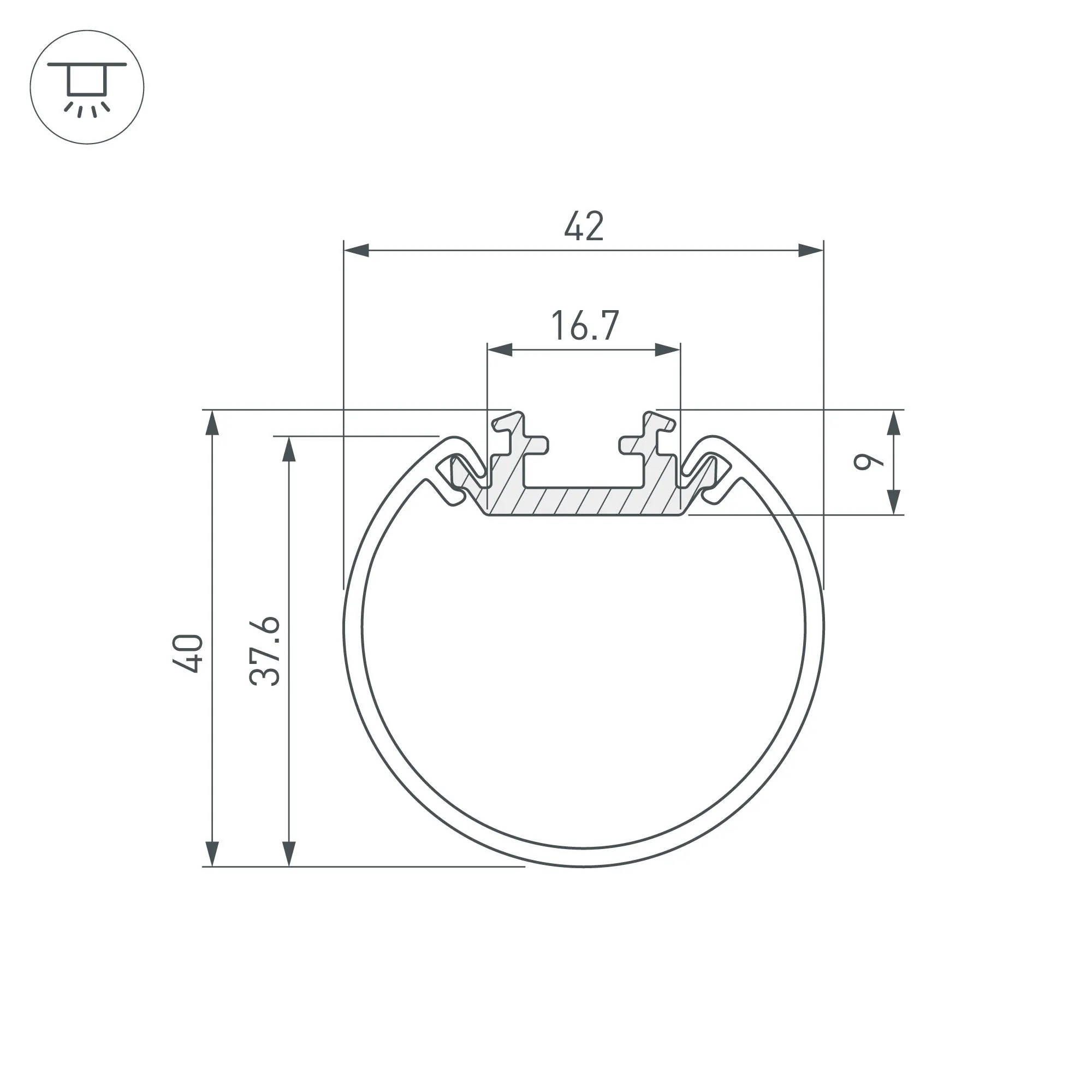 Артикул: 044517; Бренд: Arlight; товарная группа: профиль; Назначение: Для круглых светильников; Тип крепления: Подвесной; Цвет: Серебристый; Гарантия, мес: 36; Длина, мм: 2000; Ширина, мм: 23.2; высота: 9; Диаметр, мм: 40