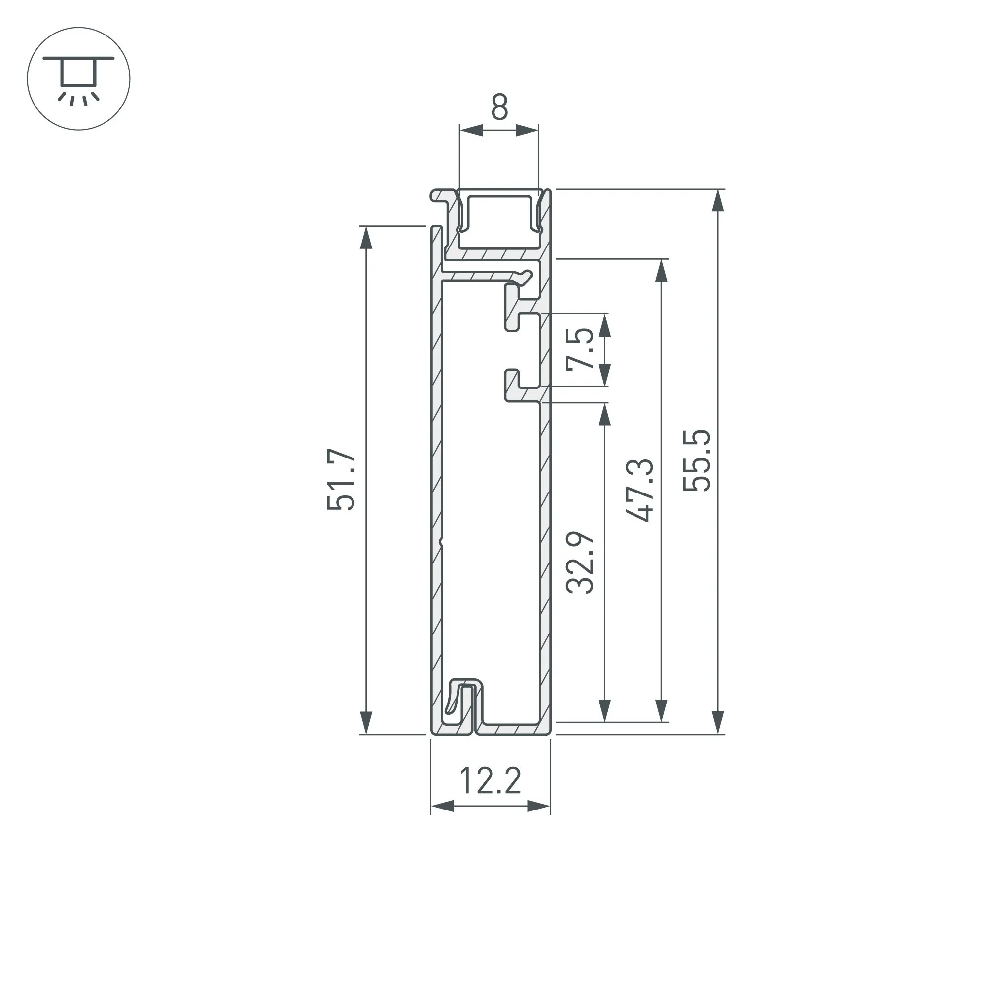 Артикул: 045442; Бренд: Arlight; товарная группа: профиль; Назначение: Для плинтуса; Тип крепления: накладной; Цвет: черный; Гарантия, мес: 36; Длина, мм: 2000; Ширина, мм: 12.2; высота: 55.5