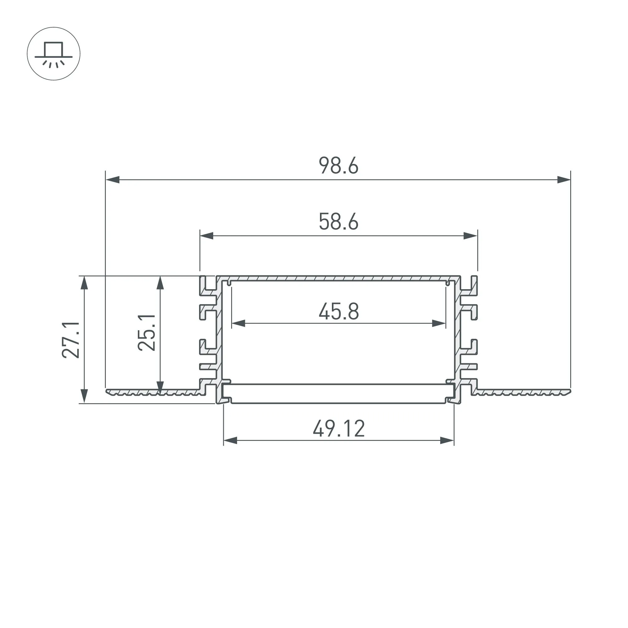 Артикул: 046430; Бренд: Arlight; товарная группа: профиль; Назначение: Для ГКЛ; Тип крепления: Встраиваемый со скрытым фланцем; Цвет: Серебристый; Гарантия, мес: 36; Длина, мм: 2000; Ширина, мм: 98.6; высота: 27.1