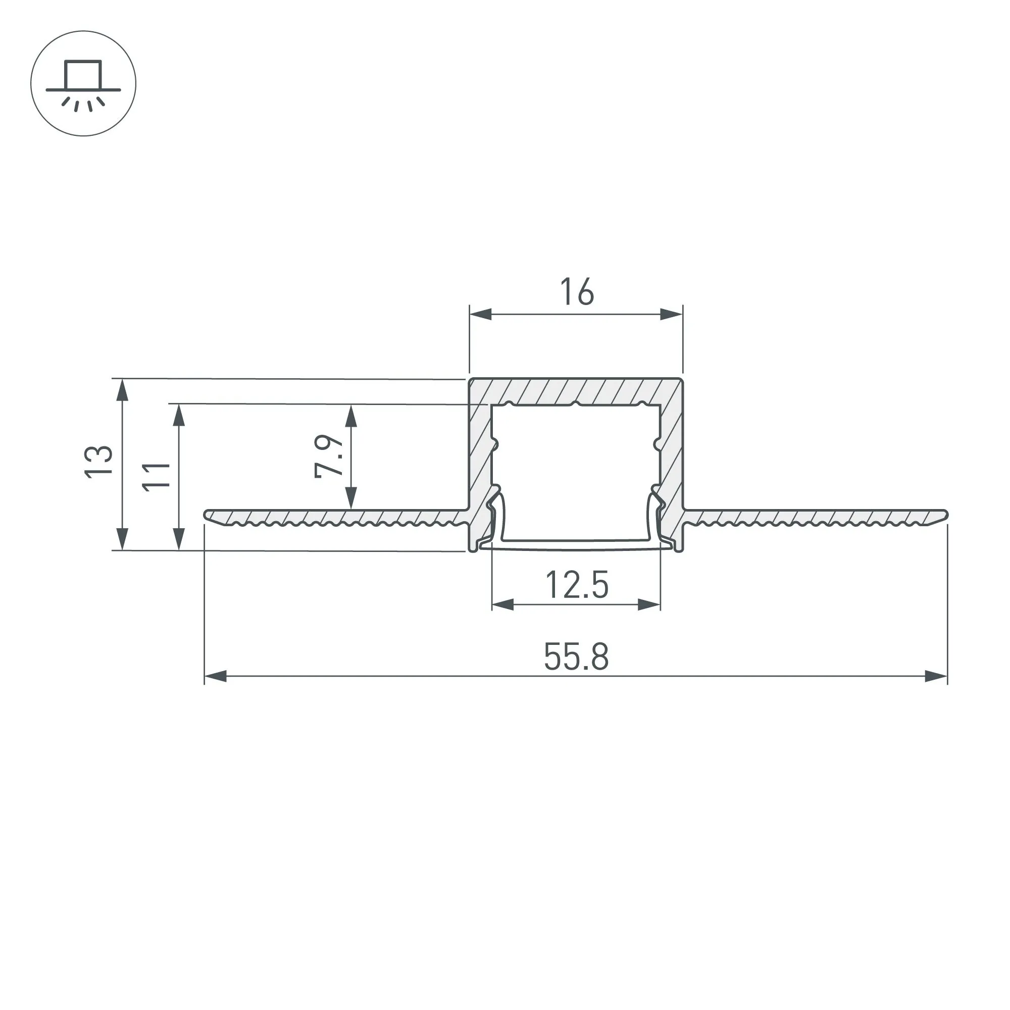 Артикул: 049012; Бренд: Arlight; товарная группа: профиль; Назначение: Для ГКЛ; Тип крепления: Встраиваемый со скрытым фланцем; Цвет: Серебристый; Гарантия, мес: 24; Длина, мм: 2000; Ширина, мм: 55.8; высота: 13