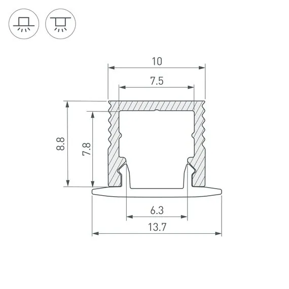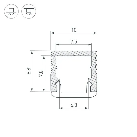 Артикул: 049017; Бренд: Arlight; товарная группа: профиль; Назначение: Для контурной подсветки; Тип крепления: Накладной / Встраиваемый; Цвет: Серебристый; Гарантия, мес: 24; Длина, мм: 2000; Ширина, мм: 10; высота: 8.8