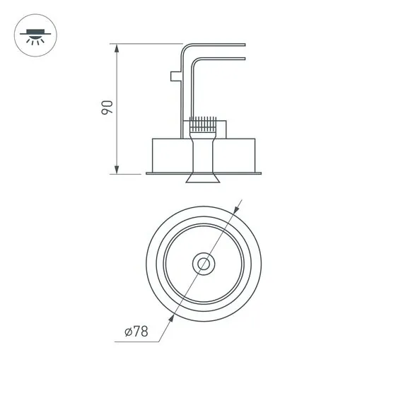 Артикул: 026868; Бренд: Arlight; товарная группа: Светильник; Тип крепления: встраиваемый; Степень защиты: IP20; Напряжение питания, V: 230; Угол рассеивания, град: 45; Класс электро-безопасности: II; Общая мощность, W: 9; Световой поток, Lm: 630; Цветовая температура, K: 3000; Индекс цветопередачи: >90; Цвет: белый; Диммирование: При замене драйвера; Гарантия, мес: 36; Длина, мм: 78; Ширина, мм: 78; высота: 90; Диаметр, мм: 78; Диаметр монтажного отверстия, мм: 70