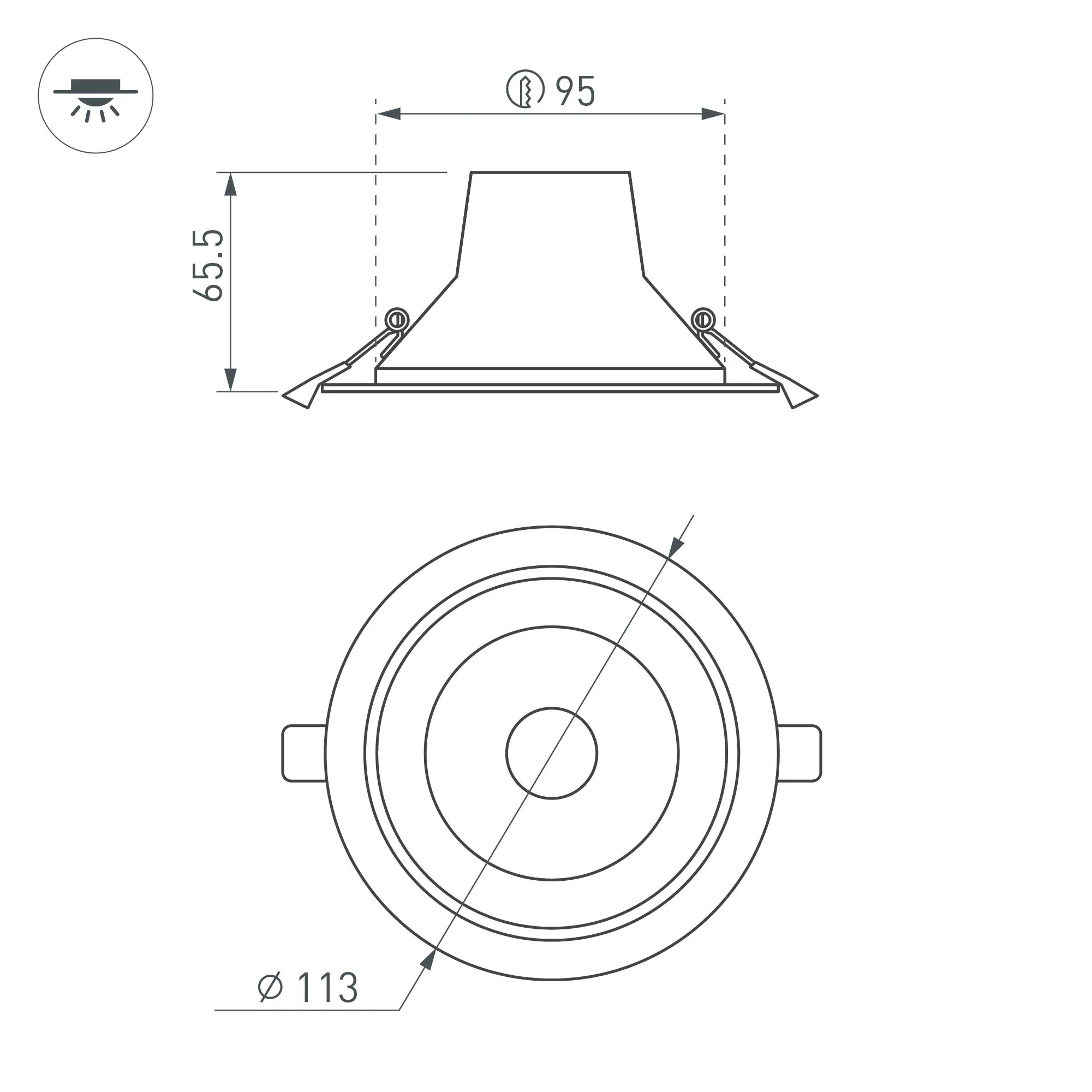 Артикул: 027315; Бренд: Arlight; товарная группа: Светильник; Тип крепления: встраиваемый; Степень защиты: IP20; Напряжение питания, V: 230; Угол рассеивания, град: 50; Класс электро-безопасности: II; Общая мощность, W: 10; Световой поток, Lm: 880; Цветовая температура, K: 6000; Индекс цветопередачи: >80; Цвет: белый; Диммирование: При замене драйвера; Гарантия, мес: 36; Длина, мм: 113; Ширина, мм: 113; высота: 65.5; Диаметр, мм: 113; Диаметр монтажного отверстия, мм: 95