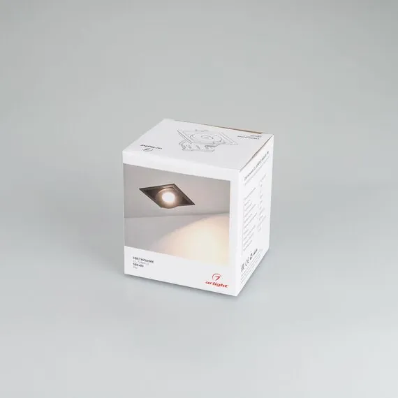 Артикул: 028148; Бренд: Arlight; товарная группа: Светильник; Тип крепления: встраиваемый; Степень защиты: IP20; Напряжение питания, V: 230; Угол рассеивания, град: 45; Класс электро-безопасности: II; Общая мощность, W: 9; Световой поток, Lm: 630; Цветовая температура, K: 4000; Индекс цветопередачи: >90; Цвет: белый; Диммирование: При замене драйвера; Гарантия, мес: 36; Длина, мм: 80; Ширина, мм: 80; высота: 90; Ширина монтажного отверстия, мм: 70; Длина монтажного отверстия, мм: 70
