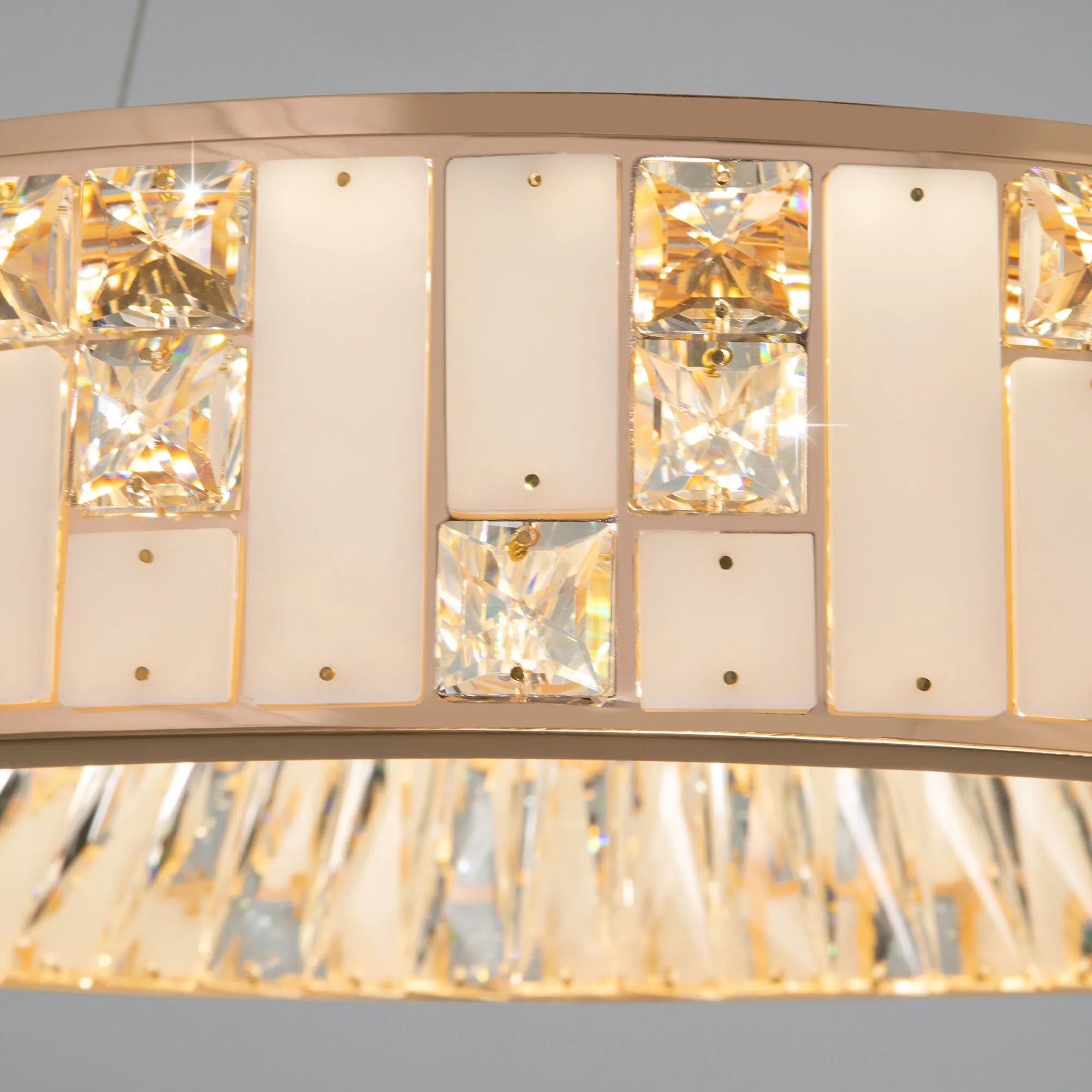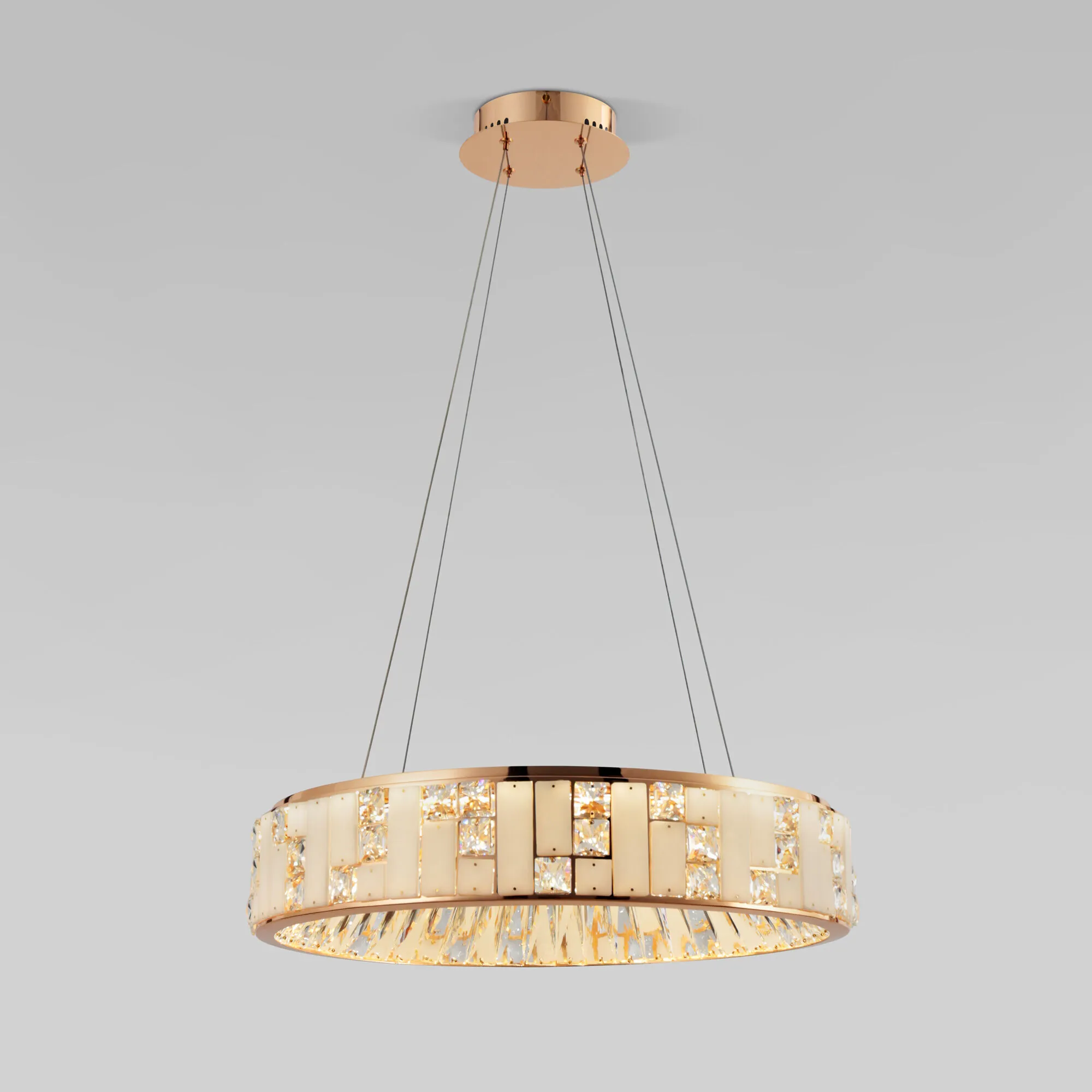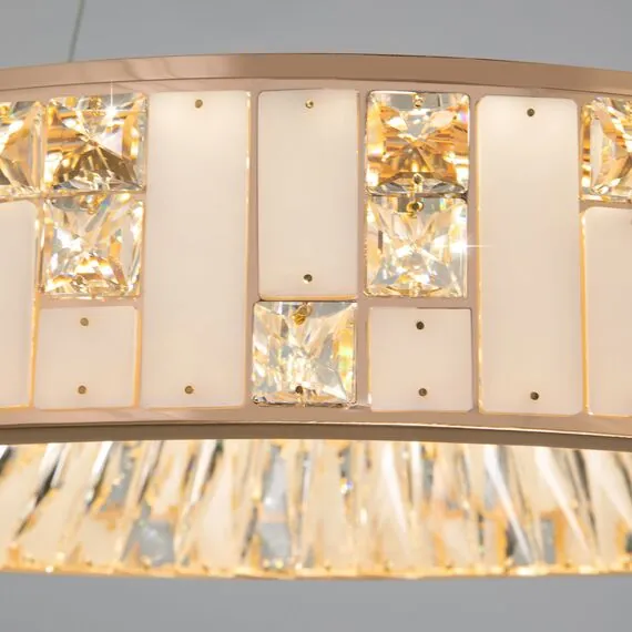 Артикул: 90373/1; Бренд: Bogate's; Серия: Cliff; Стиль: Art Deco; товарная группа: Подвесной светильник; Тип светильника: встроенные LED; место размещения: спальня;кафе;загородный дом;гостиная; Срок службы, г: 6; Тип крепления: планка; Степень защиты: IP20; Питание: 230 В, 50 Гц; Площадь освещения, м2: 13; Угол рассеивания, град: 120; Класс электро-безопасности: I; Температурный режим: -10 ... +40; Коэффициент пульсации, %: < 5; Кол-во светодиодов: 683; Тип ламп: металл; Тип светодиодов: SMD; Общая мощность, W: 83; Световой поток, Lm: 5254; Цветовая температура, K: 3000;4000;6000; Индекс цветопередачи: >80; Срок службы светодиодов, ч: 50000; Материал: металл;алебастр;хрусталь; Материал плафона: алебастр;хрусталь; Цвет: золото;белый;прозрачный; Цвет каркаса: золото, Золото; Цвет плафона: прозрачный, Прозрачный; Умный дом: совместим с умным выключателем;совместим с умным реле; Гарантия, мес: 60; Длина, мм: 580; Ширина, мм: 580; min высота: 450; max высота: 1000; Вес упаковки, кг: 9.493; Длина упаковки, см: 66.3; Ширина упаковки, см: 66.9; Высота упаковки, см: 20.3; Объем упаковки, м3: 0.09004004; Штрихкод: 4690389202704