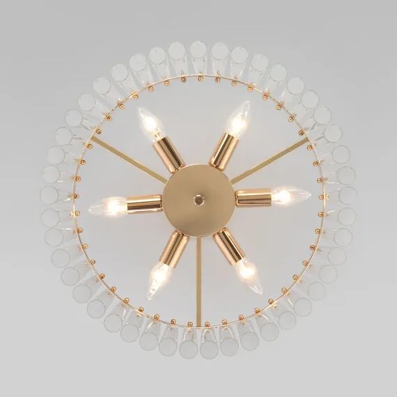 Артикул: 373/6; Бренд: Bogate's; Серия: Flamel; Стиль: Art Deco; Neo Classic; Контемпорари; товарная группа: Потолочный светильник; Тип светильника: сменная лампа; место размещения: гостиница;гостиная;спальня;кабинет; Срок службы, г: 8; Тип крепления: планка; Степень защиты: IP20; Питание: 230 В, 50 Гц; Площадь освещения, м2: 10; Класс электро-безопасности: I; Температурный режим: -10 ... +40; Тип ламп: металл; Тип цоколя: E14; Материал: стекло;металл; Материал плафона: стекло, Стекло; Цвет: золото;прозрачный; Цвет каркаса: золото, Золото; Цвет плафона: прозрачный, Прозрачный; Умный дом: встроен; Гарантия, мес: 12; Длина, мм: 500; Ширина, мм: 500; высота: 380; Высота встраиваемой части, мм: 60; Вес упаковки, кг: 5.111; Длина упаковки, см: 47.2; Ширина упаковки, см: 46.8; Высота упаковки, см: 23; Объем упаковки, м3: 0.05080608; Штрихкод: 4690389187926