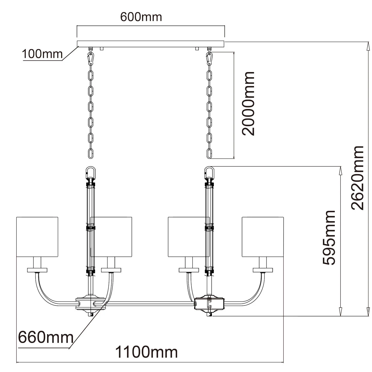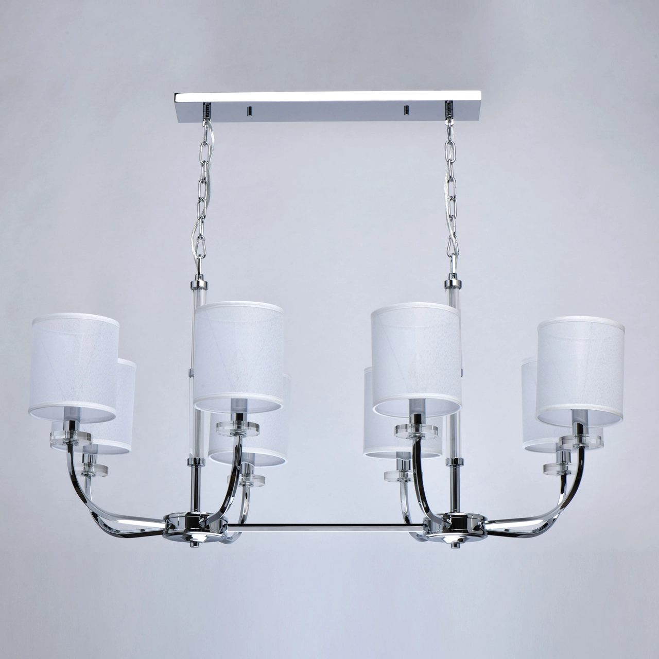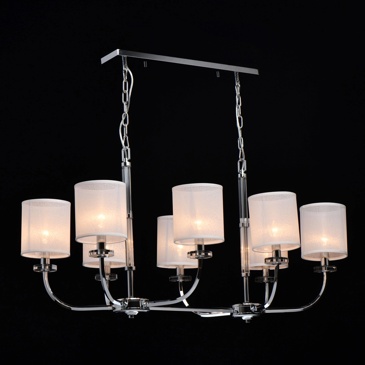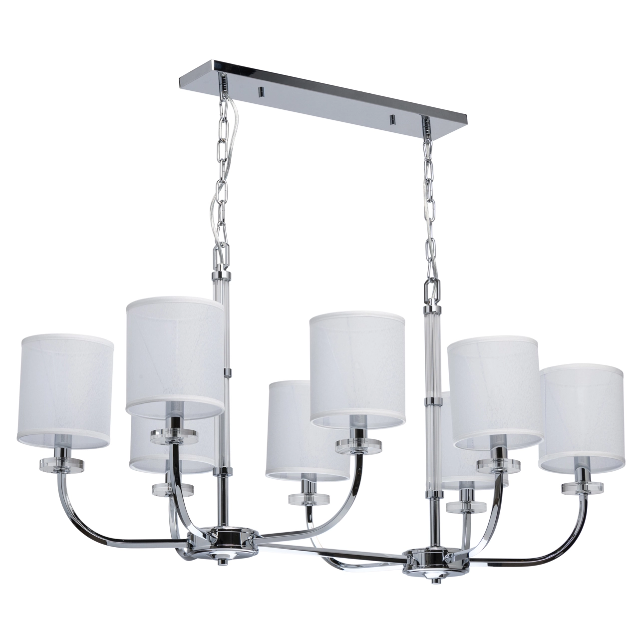 Артикул: 386017108; Бренд: Chiaro; Коллекция: Palermo; Стиль: Ретро; Тип светильника: Люстра подвесная; Форма: Прямоугольная; Тип крепления: Подвесные - Планка; Степень защиты: 20; Площадь освещения, м2: 24; Напряжение питания, V: 220В; Количество ламп: 8; Тип ламп: накаливания, Накаливания; Тип цоколя: E14; Мощность ламп, W: 60; Общая мощность, W: 480; Световой поток, Lm: 5160; Цветовая температура, K: 2700; Материал каркаса: Хрусталь; Металл; Материал плафона: ткань, Ткань; Цвет каркаса: хром, Хром; Цвет плафона: белый, Белый; Лампы в комплекте: Нет; Наличие пульта: Нет; Гарантия, мес: 12; Длина, мм: 1100; Ширина, мм: 660; высота: 2620; Длина потолочной чаши, мм: 600; Ширина потолочной чаши, мм: 100; Высота потолочной чаши, мм: 25; Вес, кг: 11.36; Вес упаковки, кг: 14.2; Длина упаковки, см: 89; Ширина упаковки, см: 65; Высота упаковки, см: 31