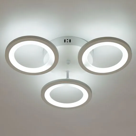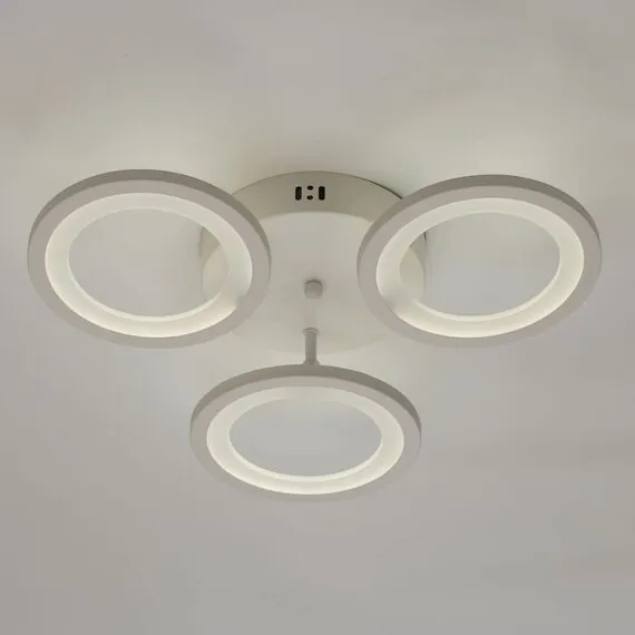 Артикул: 424013303; Бренд: De City; Коллекция: Мадлен; Стиль: Современный; Тип светильника: Потолочные; место размещения: Комната; Коридор; Кухня; Квартира; Офис; Прихожая; Ванная; Форма: Кольца; Тип крепления: планка; Степень защиты: IP0; Площадь освещения, м2: 18; Напряжение питания, V: 220; Количество ламп: 3; Тип ламп: LED; Тип цоколя: LED; Мощность ламп, W: 36; Общая мощность, W: 72; Световой поток, Lm: 4824; Цветовая температура, K: 3000; Материал каркаса: металл, Металл; Лампы в комплекте: Нет; Диммирование: Возможность подключить - Нет; Встроенный - Да; Наличие пульта: Да; Гарантия, мес: 12; Длина, мм: 480; Ширина, мм: 480; высота: 90; Высота потолочной чаши, мм: 40; Диаметр потолочной чаши, мм: 180; Вес, кг: 0.8; Вес упаковки, кг: 1.04; Длина упаковки, см: 24.5; Ширина упаковки, см: 24.5; Высота упаковки, см: 10.5; Штрихкод: 4250369192564
