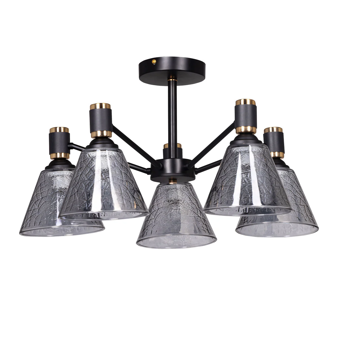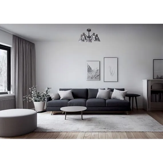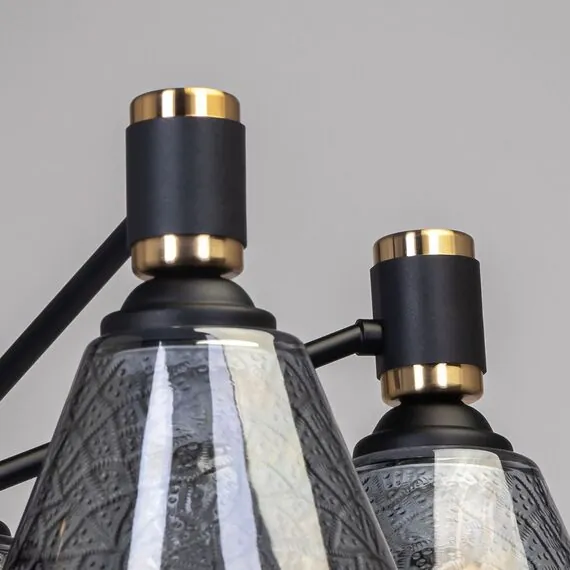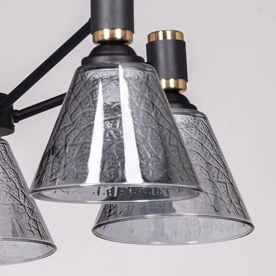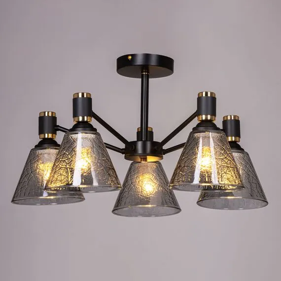 Артикул: 635011205; Бренд: De City; Коллекция: Дэла; Тип светильника: Люстра потолочная; место размещения: Гостиная; Кухня; Форма: Круглая; Тип крепления: планка; Степень защиты: IP0; Площадь освещения, м2: 15; Напряжение питания, V: 220; Количество ламп: 5; Тип ламп: накаливания, Накаливания; Тип цоколя: E27; Мощность ламп, W: 60; Общая мощность, W: 300; Световой поток, Lm: 3225; Цветовая температура, K: 2700; Материал каркаса: металл, Металл; Материал плафона: стекло, Стекло; Цвет каркаса: черный, Черный, Чёрный, чёрный; Цвет плафона: серый, Серый; Лампы в комплекте: Нет; Диммирование: Возможность подключить - Нет; Встроенный - Нет; Наличие пульта: Нет; Гарантия, мес: 12; Длина, мм: 560; Ширина, мм: 560; высота: 310; Вес, кг: 2.8; Вес упаковки, кг: 3.22; Длина упаковки, см: 29; Ширина упаковки, см: 25; Высота упаковки, см: 18; Штрихкод: 4250369191048
